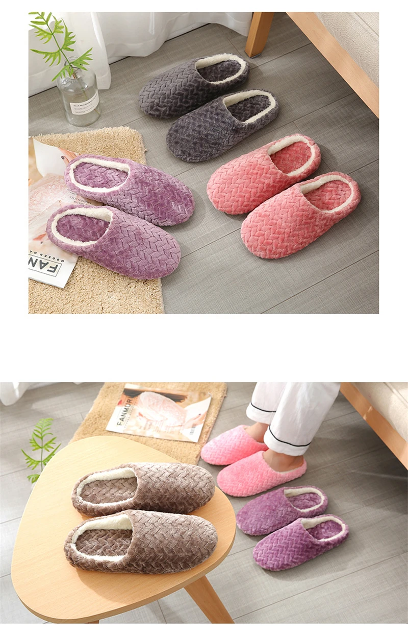 Плюшевые домашние тапочки, женские зимние хлопковые сланцы, мягкая теплая Домашняя обувь, однотонные комнатные тапочки, мужские удобные шлепанцы без шнуровки