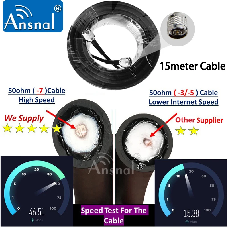 Черный коаксиальный кабель RG6, 15 метров, штекер N-штекер N, коаксиальный кабель с низкими потерями для мобильного телефона повторитель сигнала для сотового телефона
