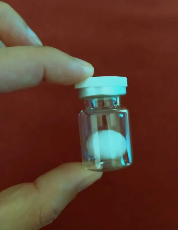 пока не знаю,баночка маленькая,как бутылочка от пенициллина, даже меньше, внутри таблеточка.