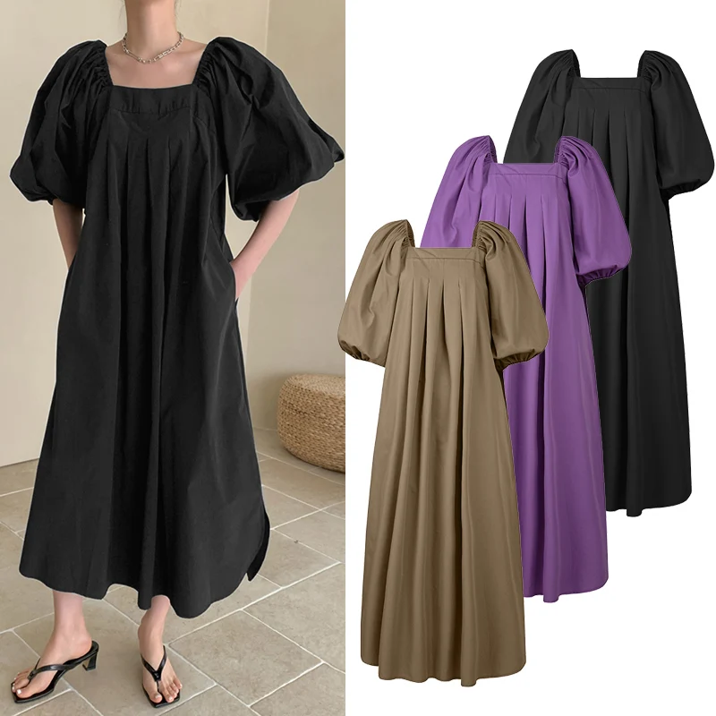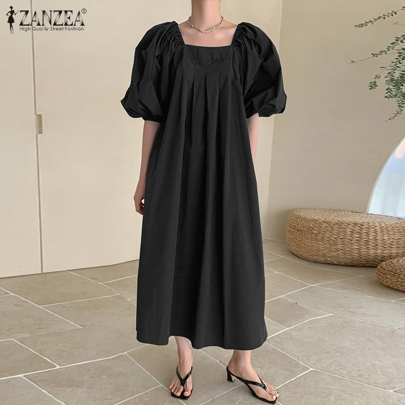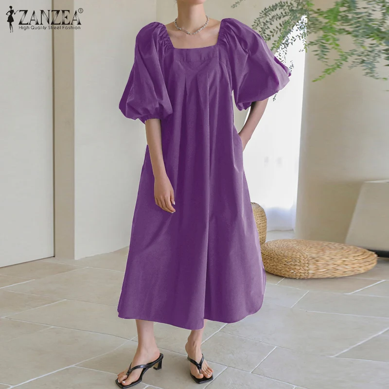Платье ZANZEA женское с квадратным вырезом, длинный пикантный винтавечерние вечерний сарафан с пышными рукавами, в богемном стиле, однотонное, на лето