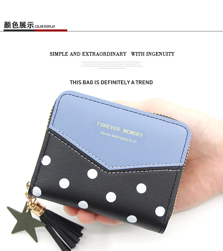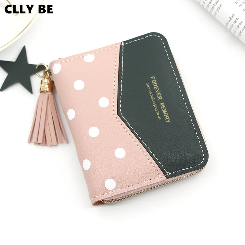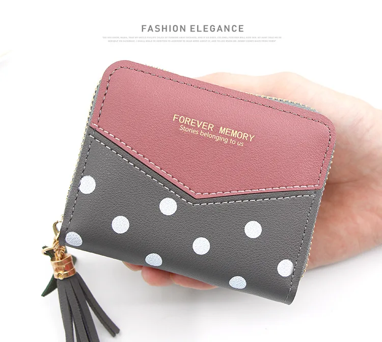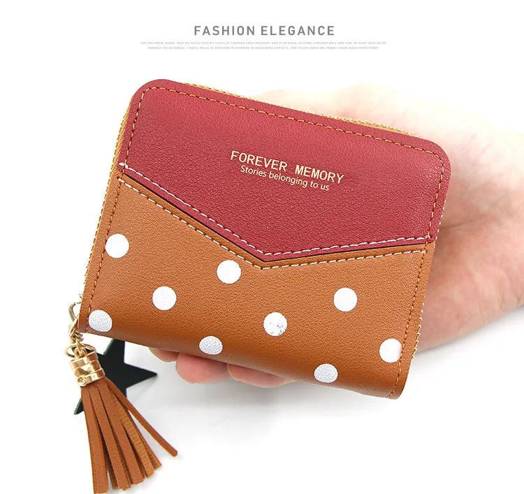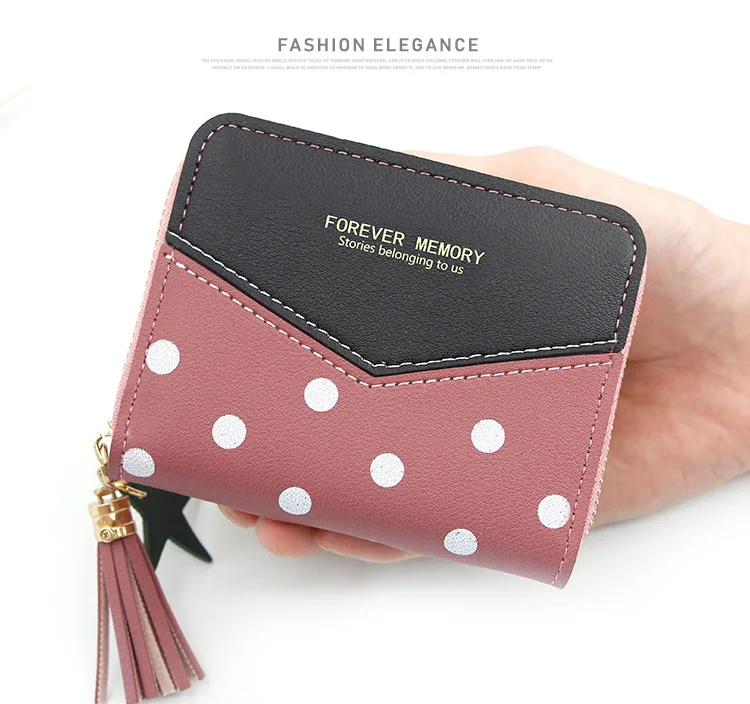 Модные кошельки для женщин, Дамский короткий кошелек в горошек, Женский кошелек с кисточкой, кошелек для монет, многофункциональный чехол для карт, сумка для денег