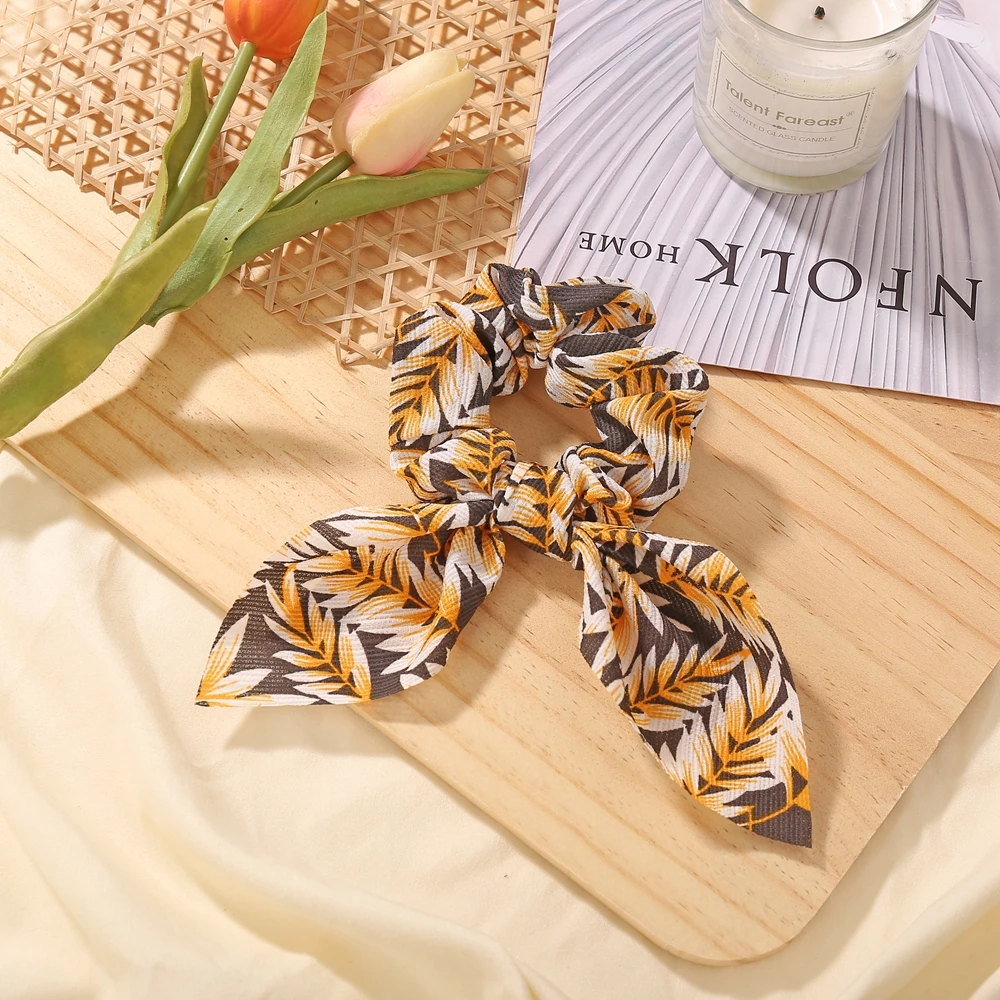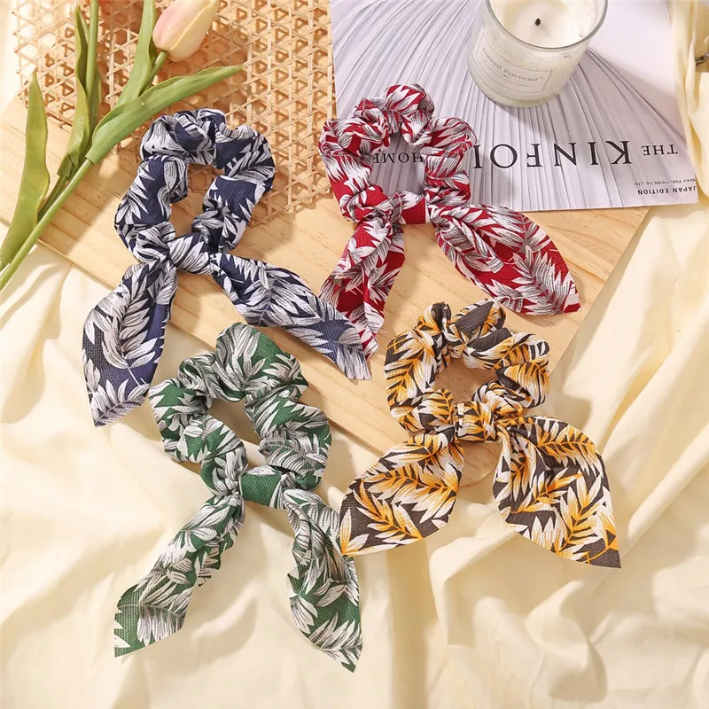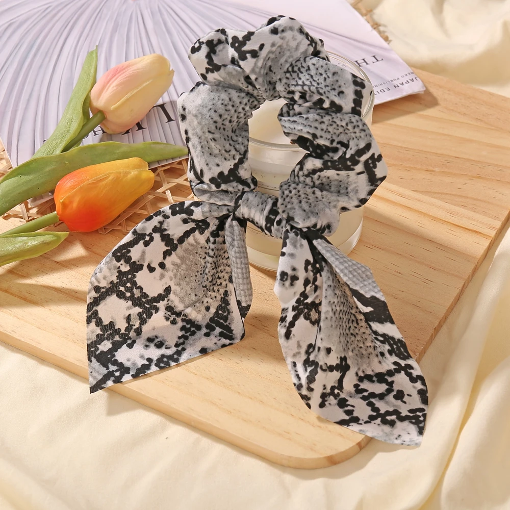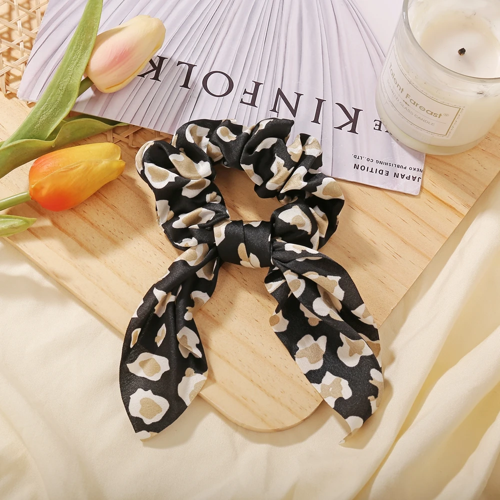 Резинки для волос женские, шифоновые, с леопардовым принтом, в полоску, с кроличьими ушками