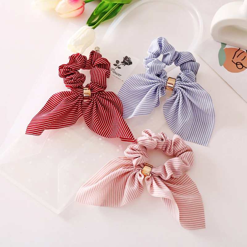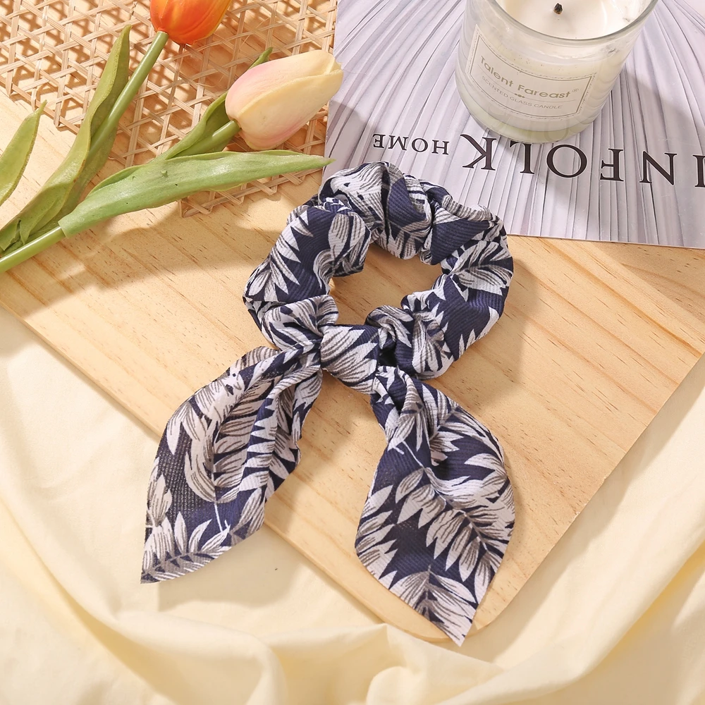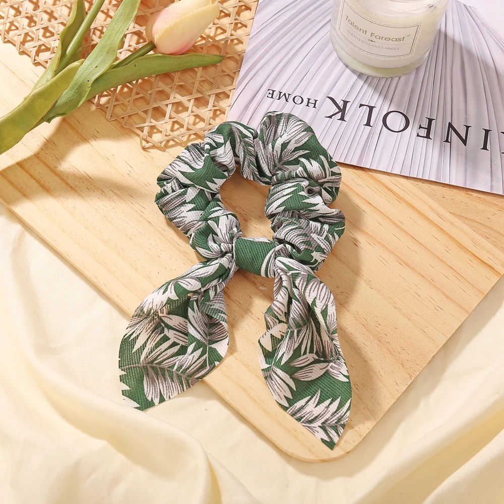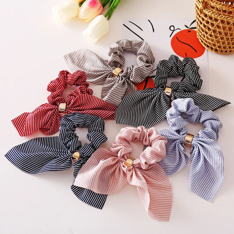 Резинки для волос женские, шифоновые, с леопардовым принтом, в полоску, с кроличьими ушками