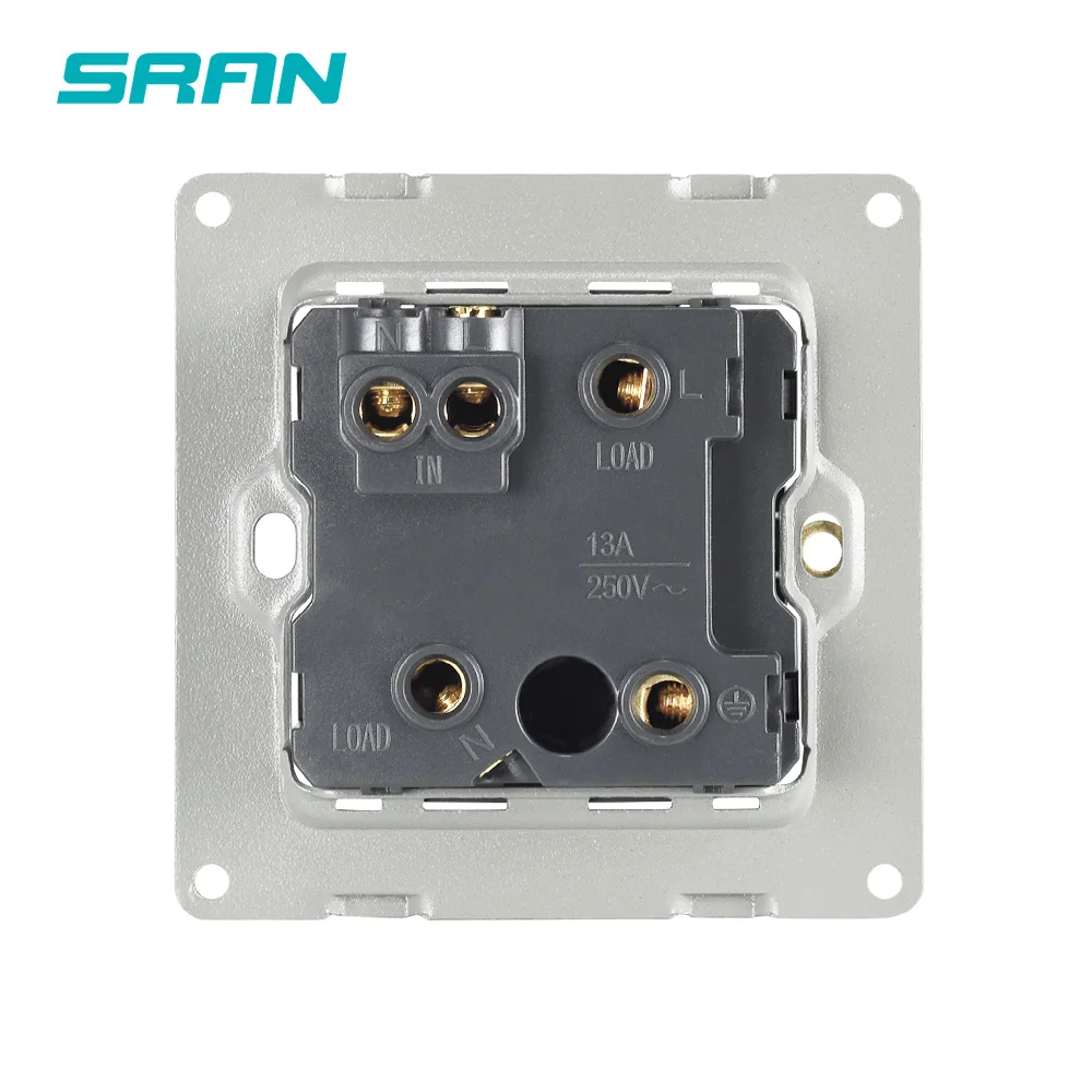 Выключатель питания SRAN UK 13a с предохранителем, белыйчерныйзолотой кристаллический экран из закаленного стекла, 86 мм * 86 мм с красным светодиодным индикатором, настенный выключатель