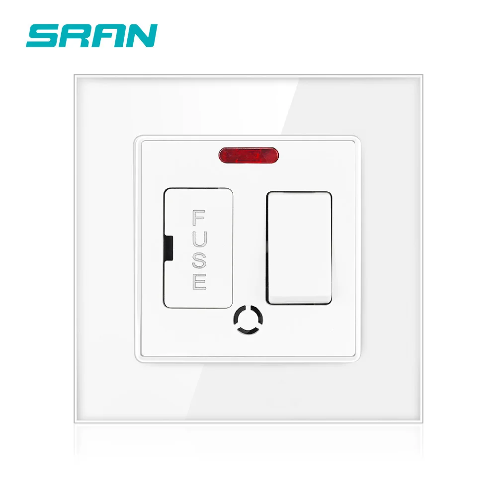 SRAN UK 13a выключатель питания с предохранителем, белый/черный/золотой Кристалл Закаленное стекло панель 86 мм * 86 мм с красным светодиодным индикатором настенный выключатель