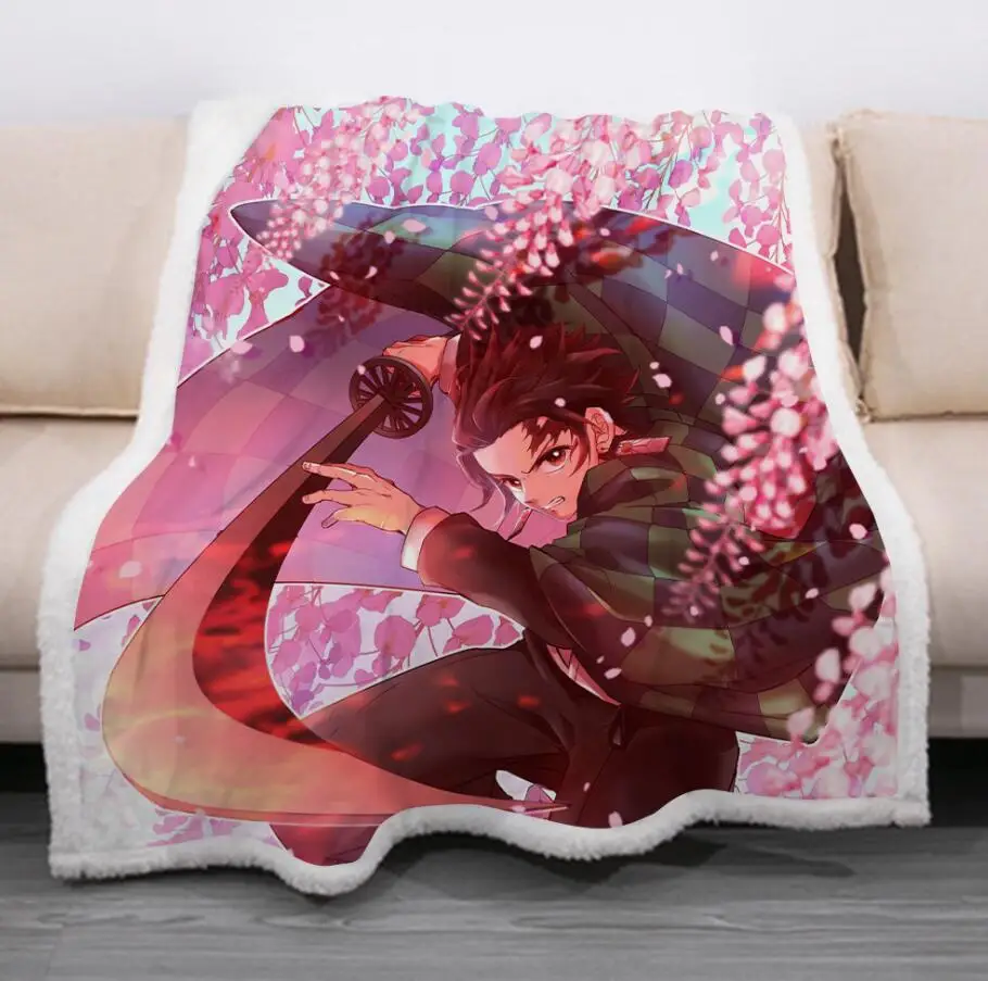 Одеяло с забавным персонажем аниме Demon Slayer Kimetsu No Yaib, 3d-принт, шерпа, одеяло на кровать, домашний текстиль, сказочный стиль 07