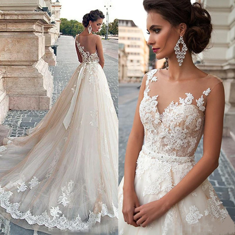 MYYBLE дешевые 2021 прозрачные иллюзионные Свадебные платья цвета ш...