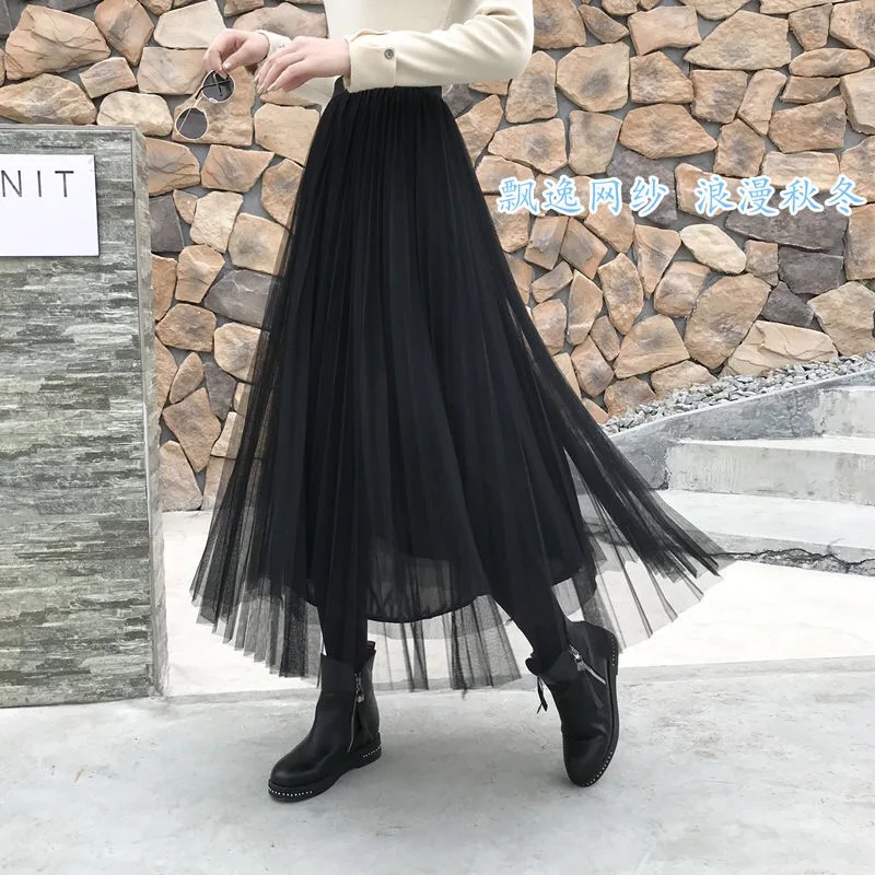 Женская шифоновая юбка-макси, юбка из эластичной ткани с высокой талией, повседневная юбка для вечерние, F103, осень плиссированная летняя юбка
