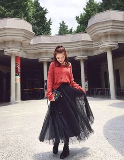 Плиссированная юбка из двойного фатина. Подъюбник - синтетика. На рост 172 - ниже колена сантиметров на 10. Мой обхват талии 74см. Юбка в талии села хорошо, но много места в ней не осталось. Сшита более-менее аккуратно. В Беларусь посылка шла больше 2 месяцев. Брала черного цвета. С каблуком выглядит нарядно.