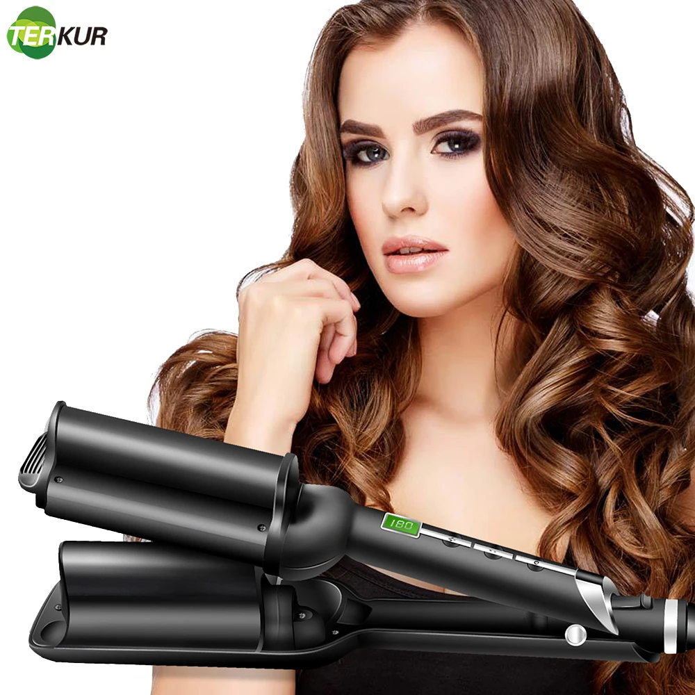 Щипцы для завивки волос с тремя трубками, плойка 32 мм, Большая кер...
