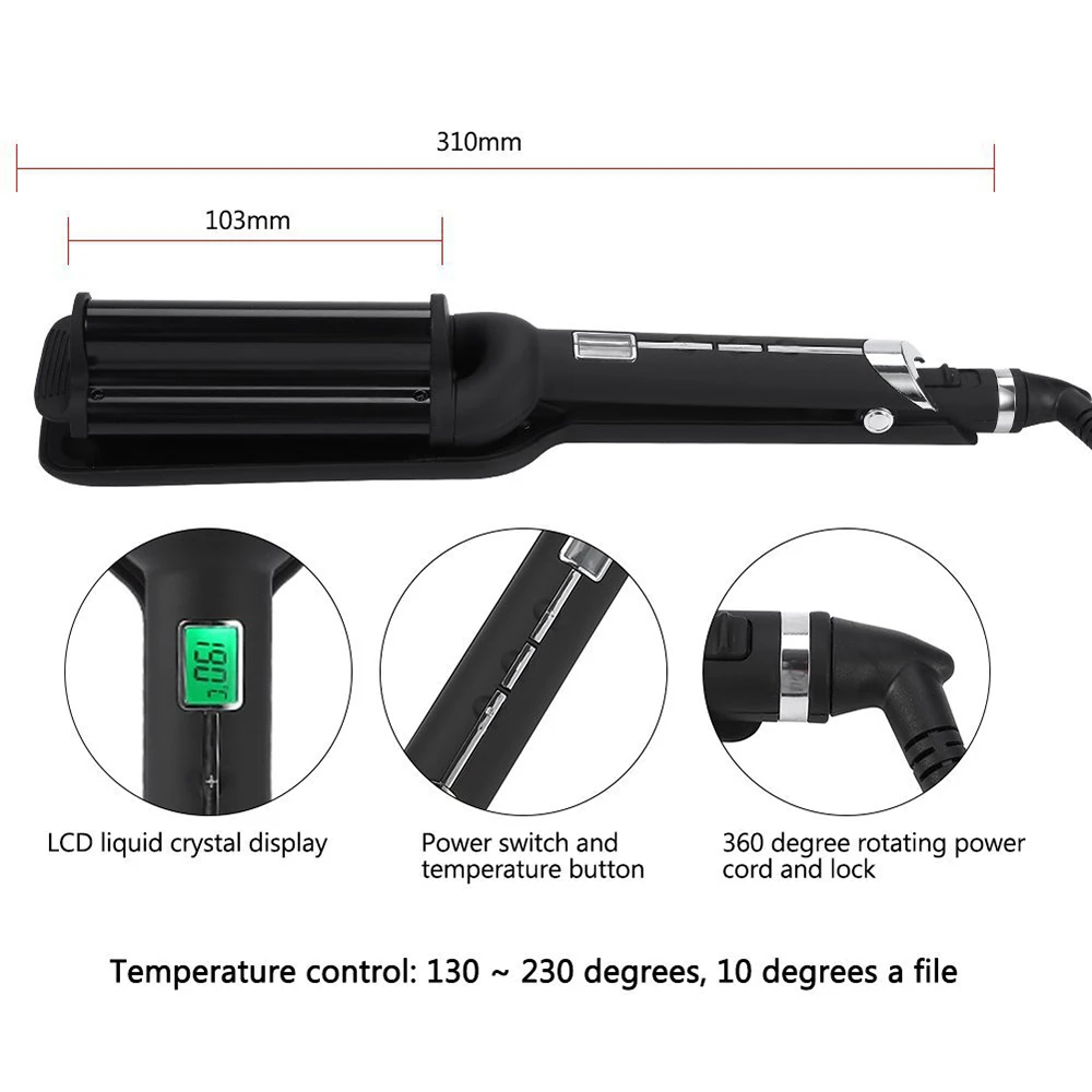 Глубокая u-образная водяная пульсация, щипцы для завивки, палочка, воин с ЖК-дисплеем температуры, керамические турмалиновые щипцы для завивки волос, инструменты для укладки