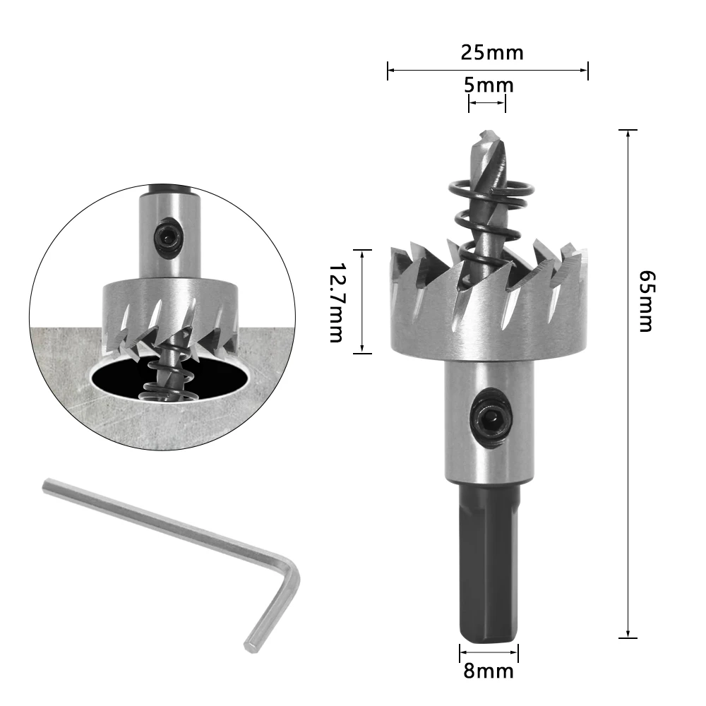 Высокоскоростное сверло из быстрорежущей стали с твердосплавным наконечником, 5 размеров, для отверстий, стандартное металлическое сверление, деревообработка, резка, столярные короны