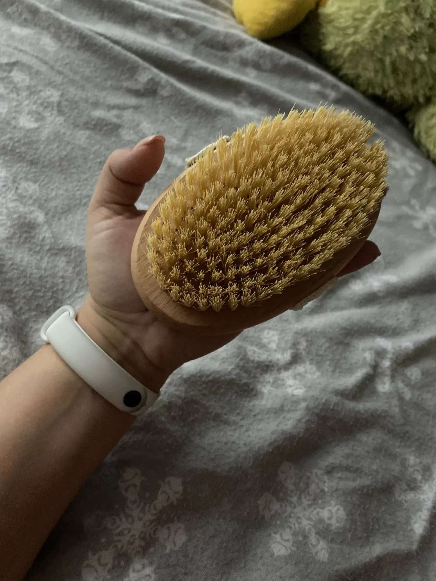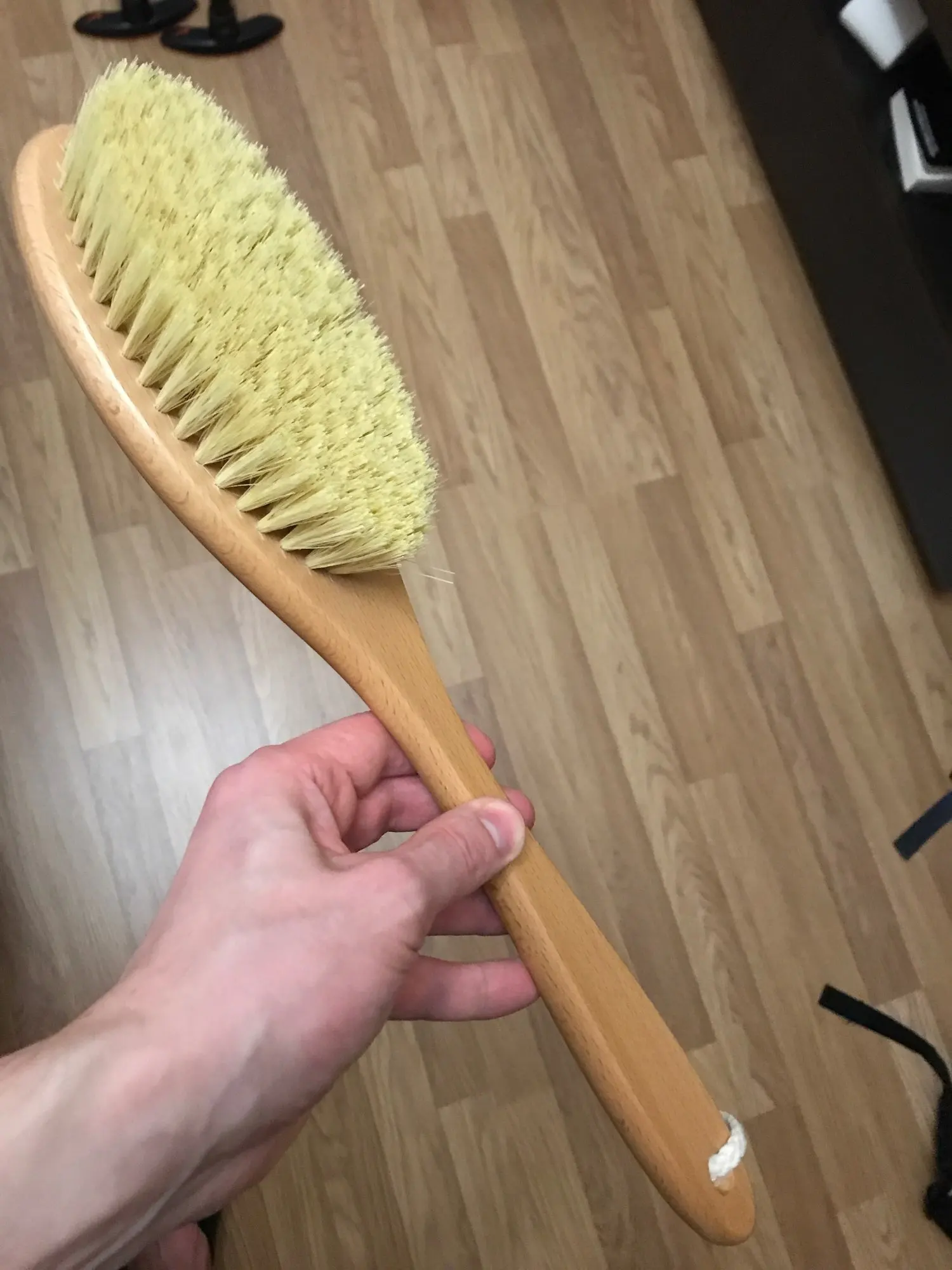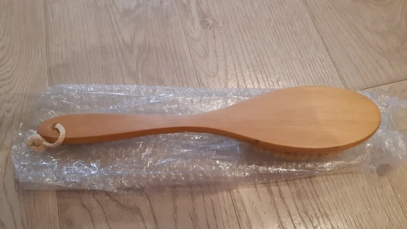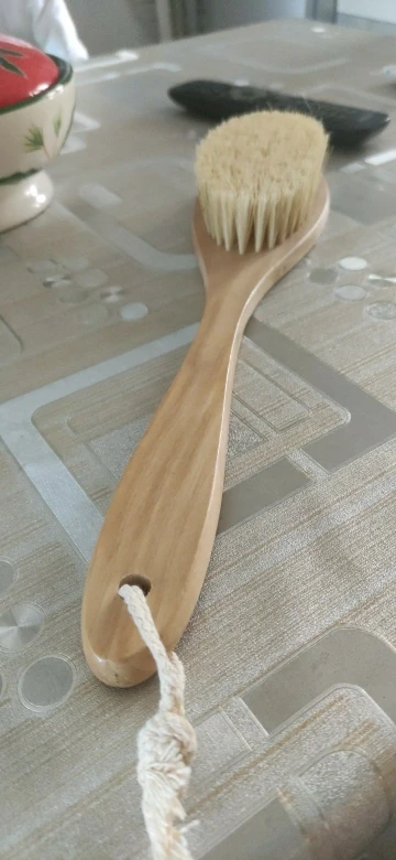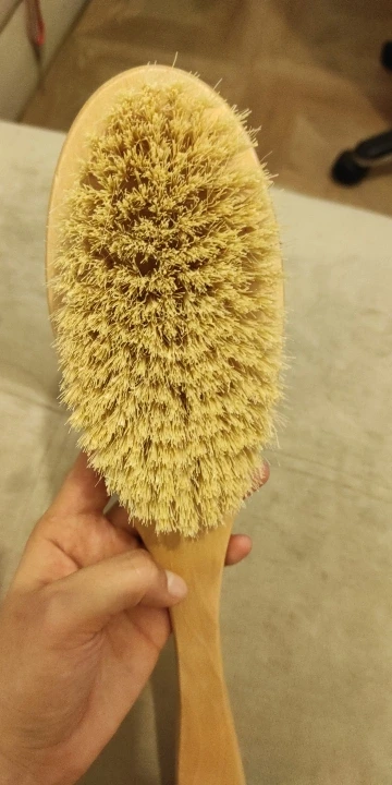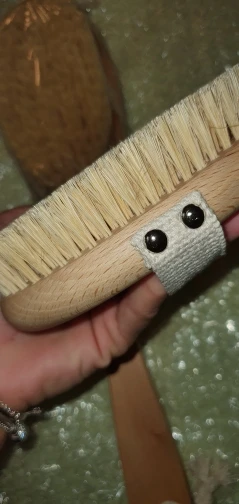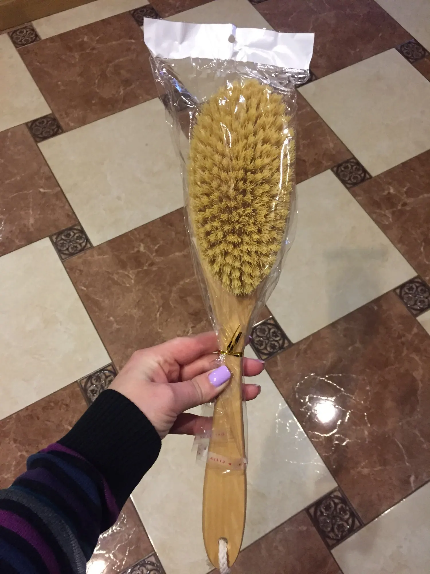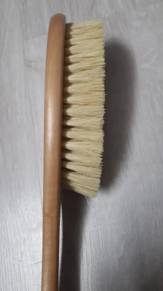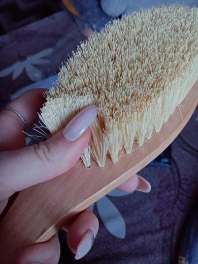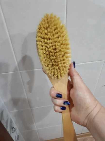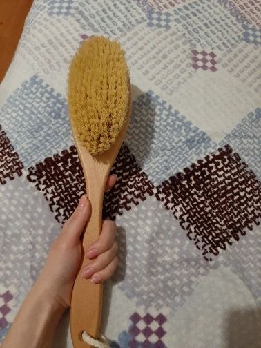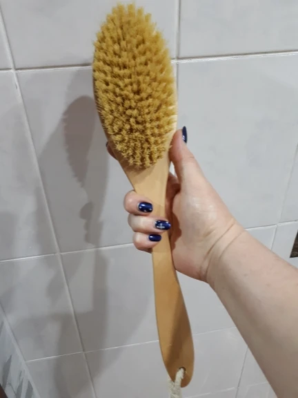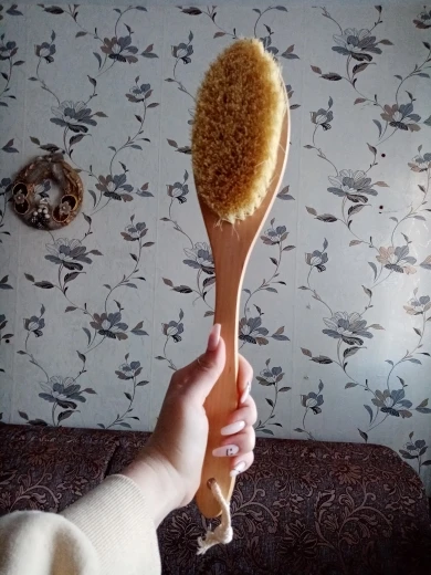 Кто любит массаж по жёстче, тогда эта щетка точно для вас)) не уверена, что это натуральная щетка..мне царапает ноги.. удобна в использовании