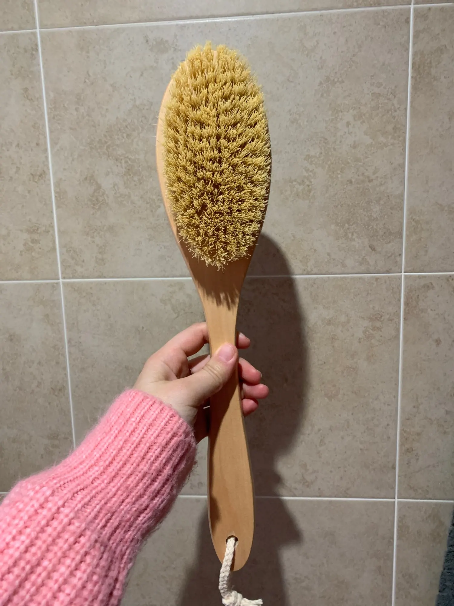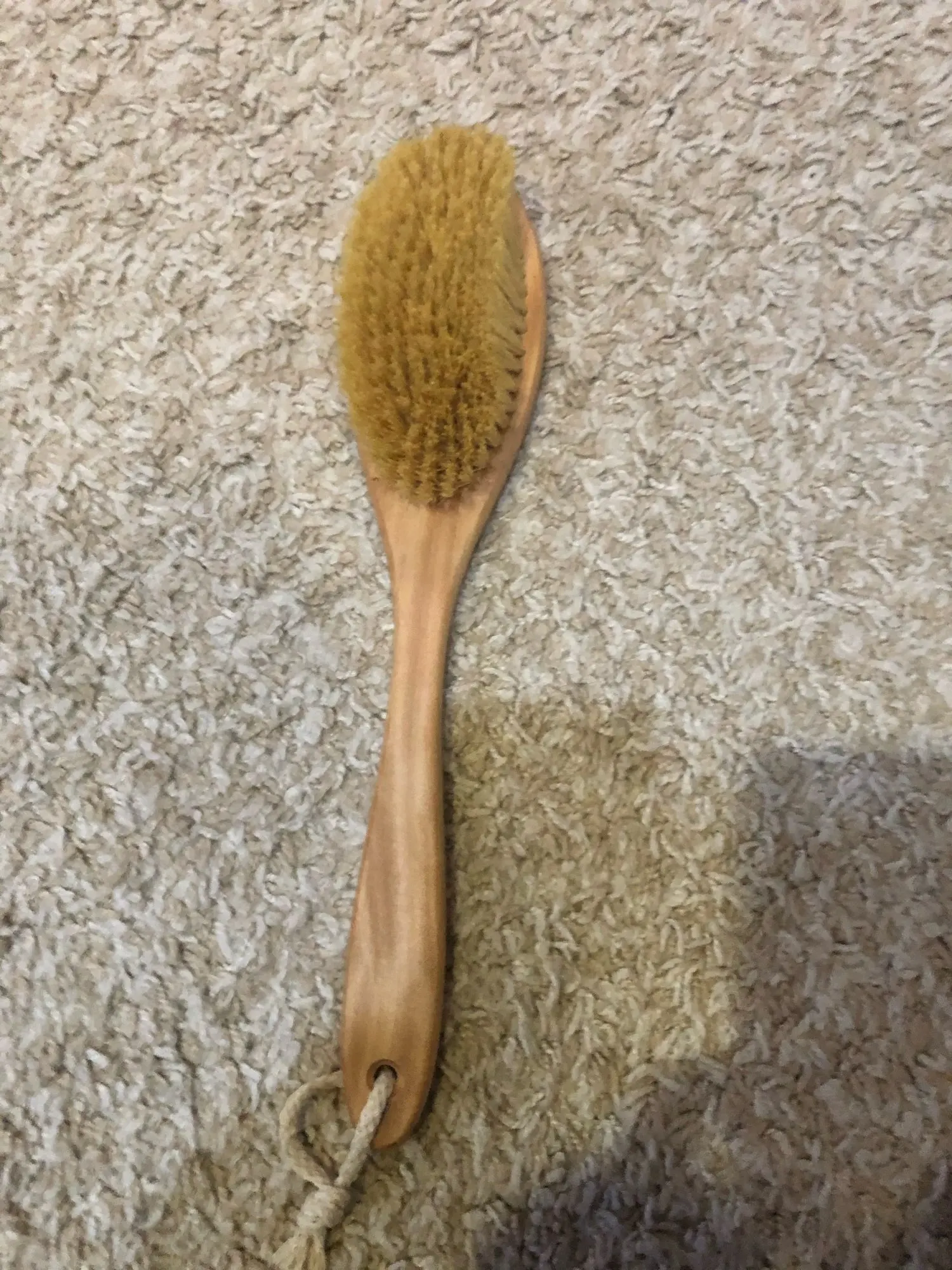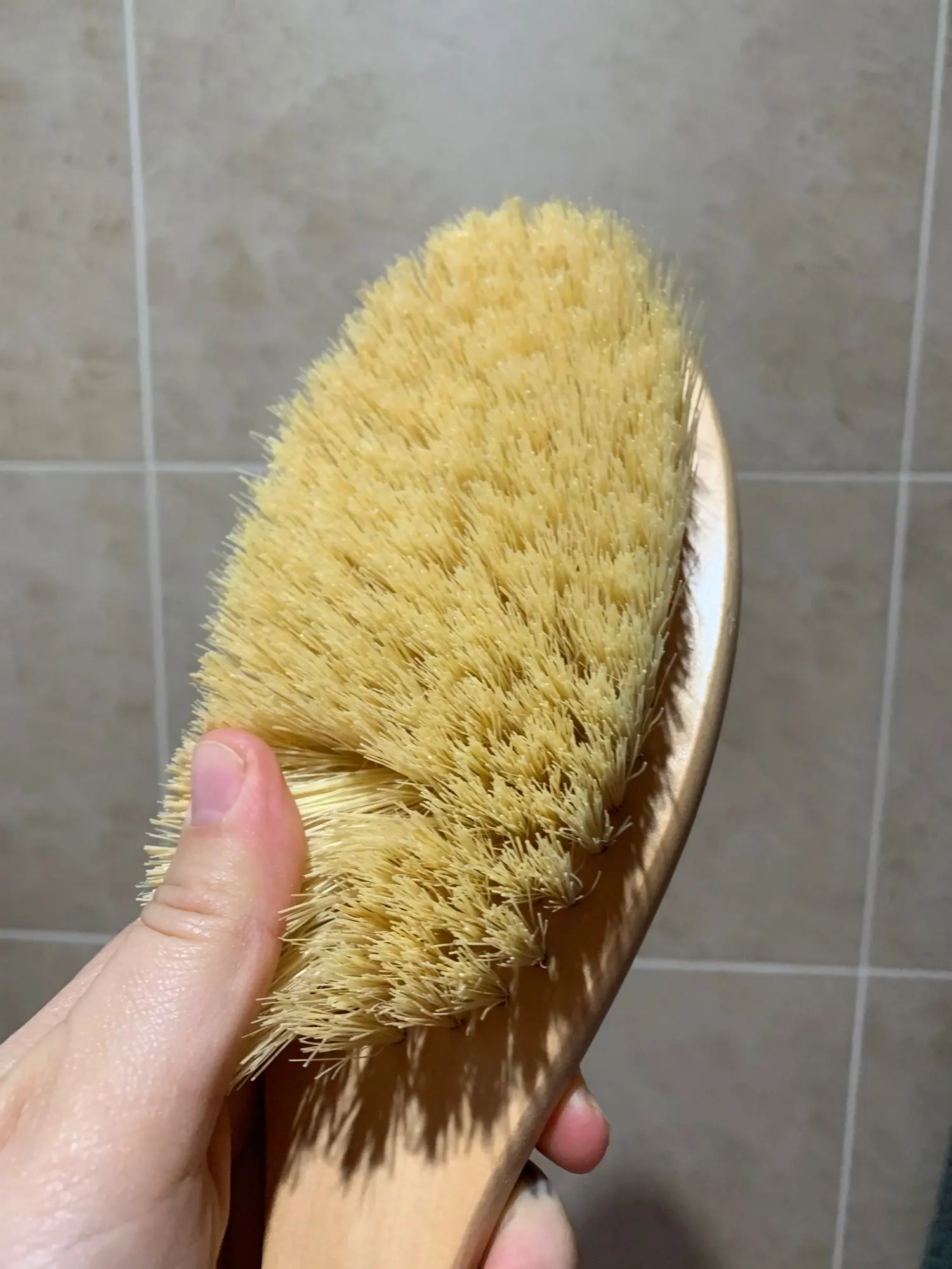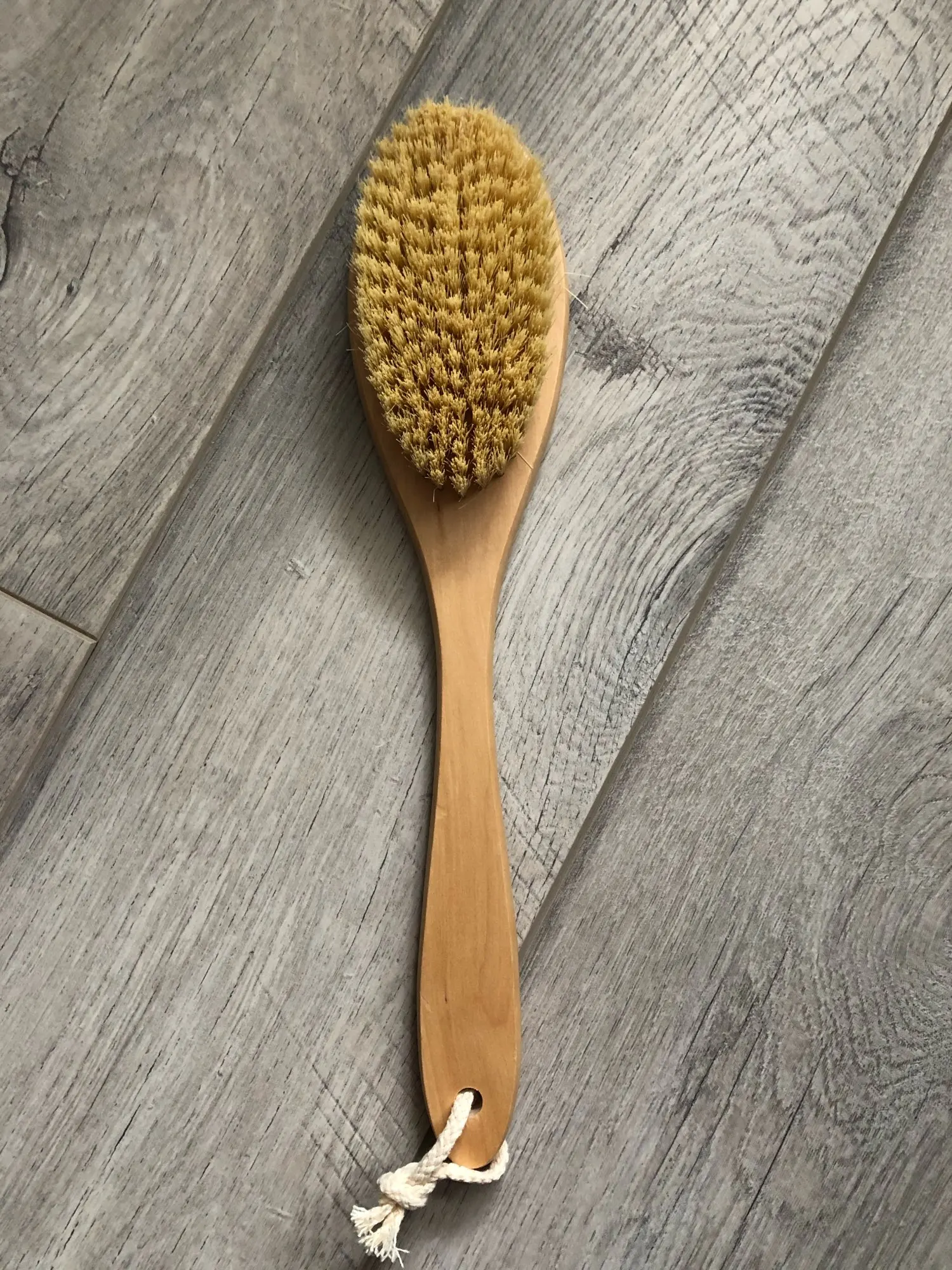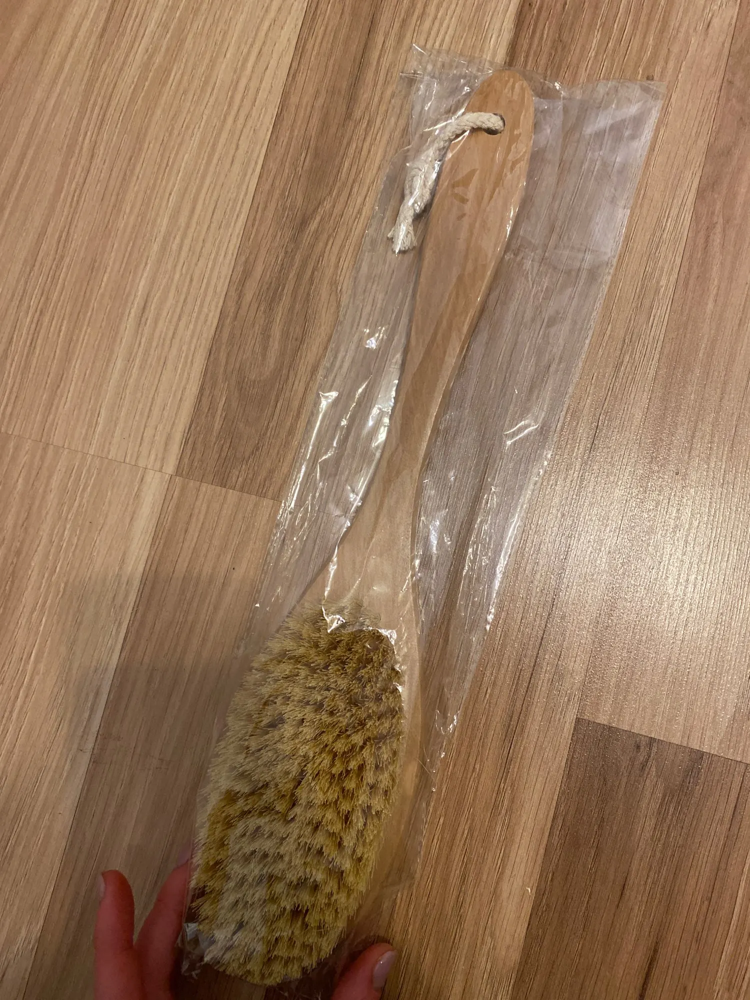 Кто любит массаж по жёстче, тогда эта щетка точно для вас)) не уверена, что это натуральная щетка..мне царапает ноги.. удобна в использовании