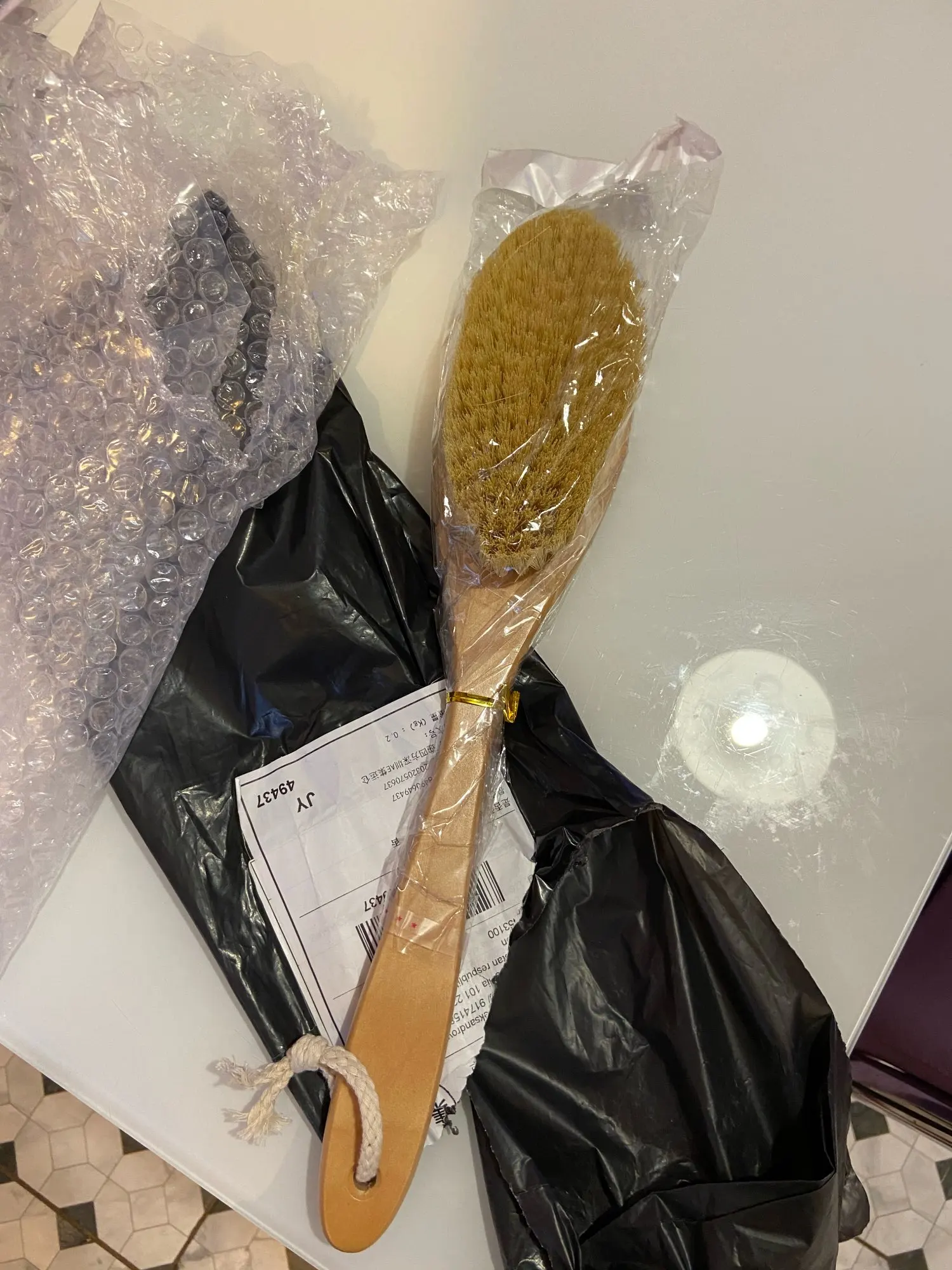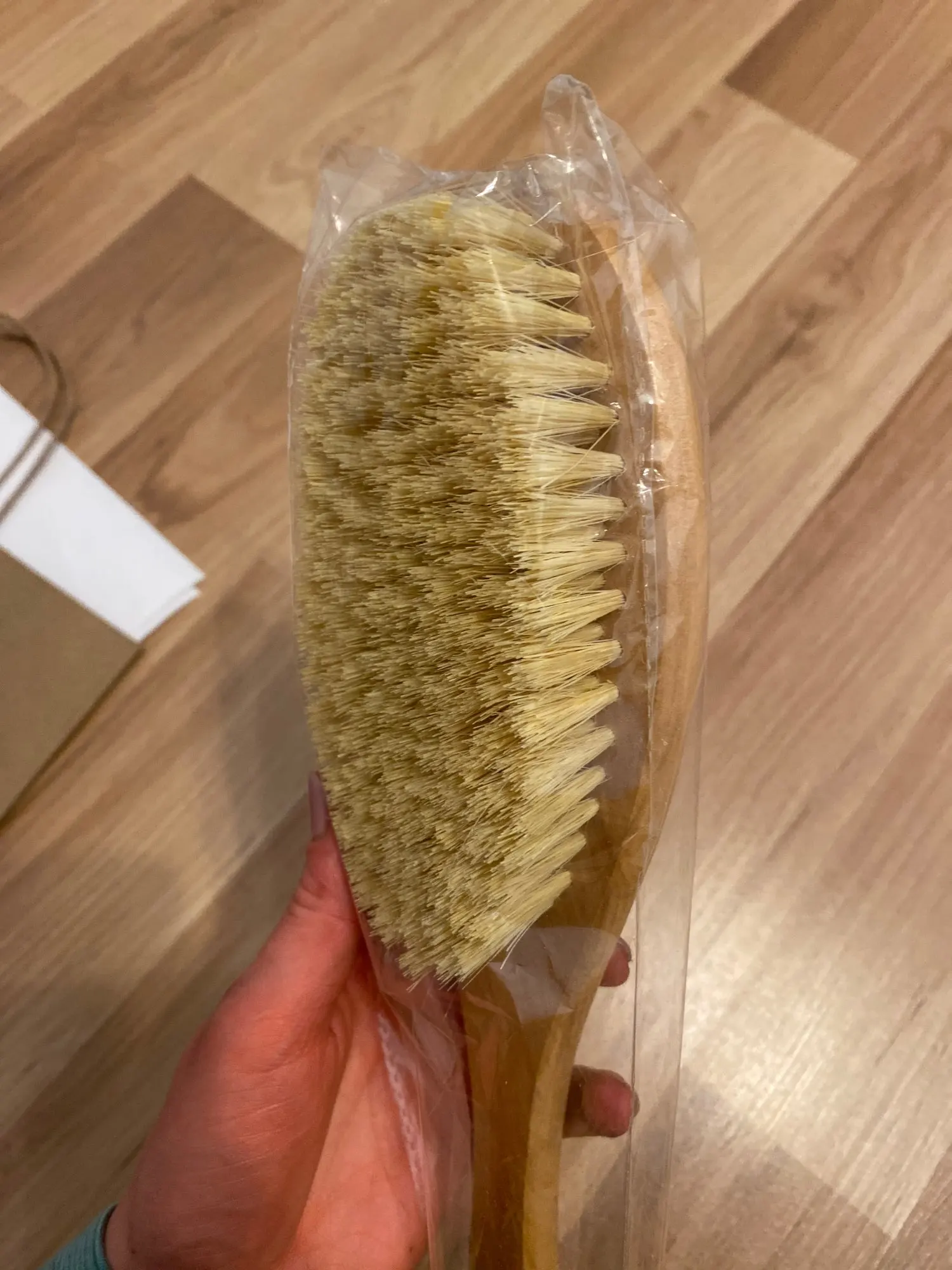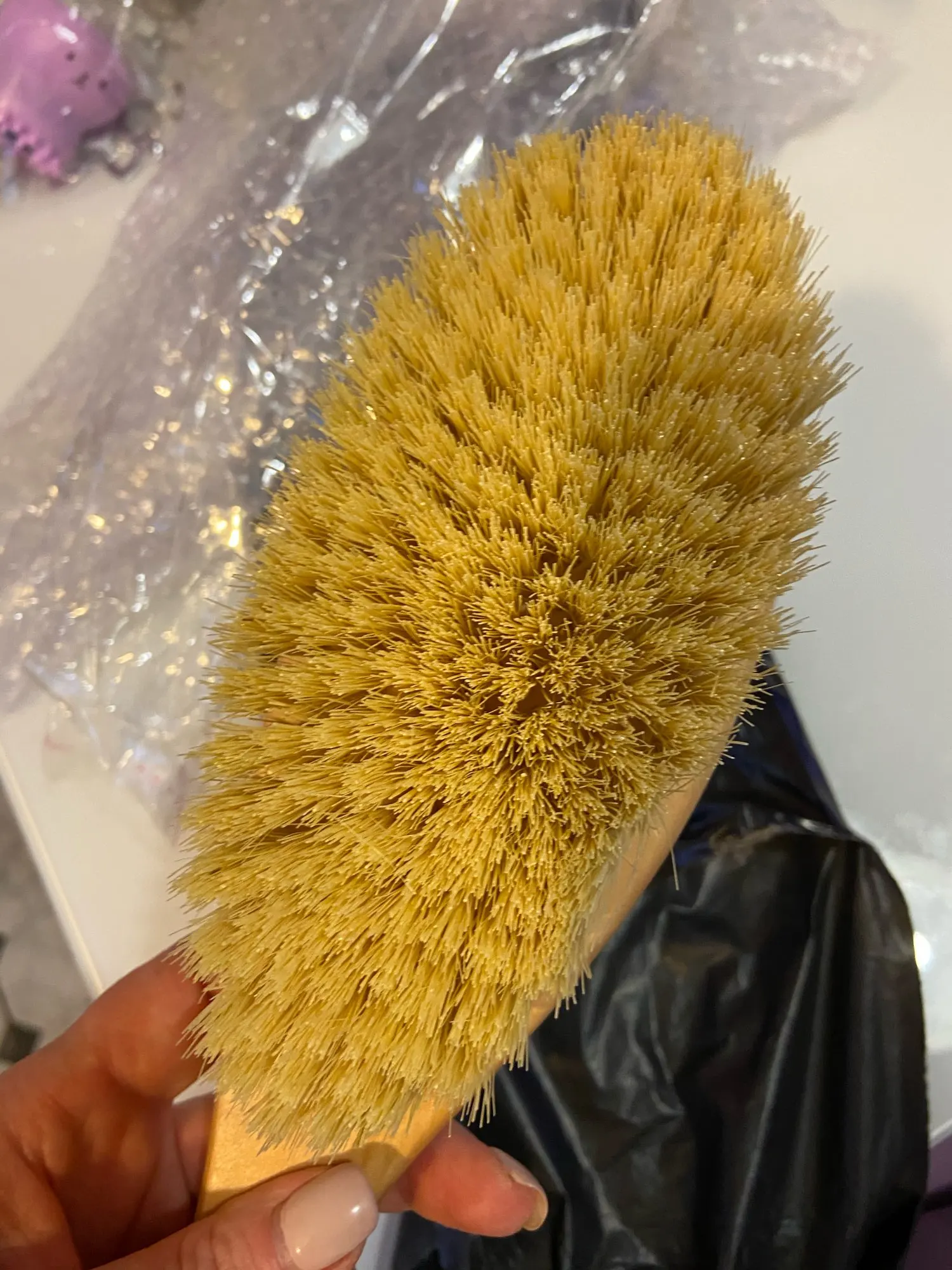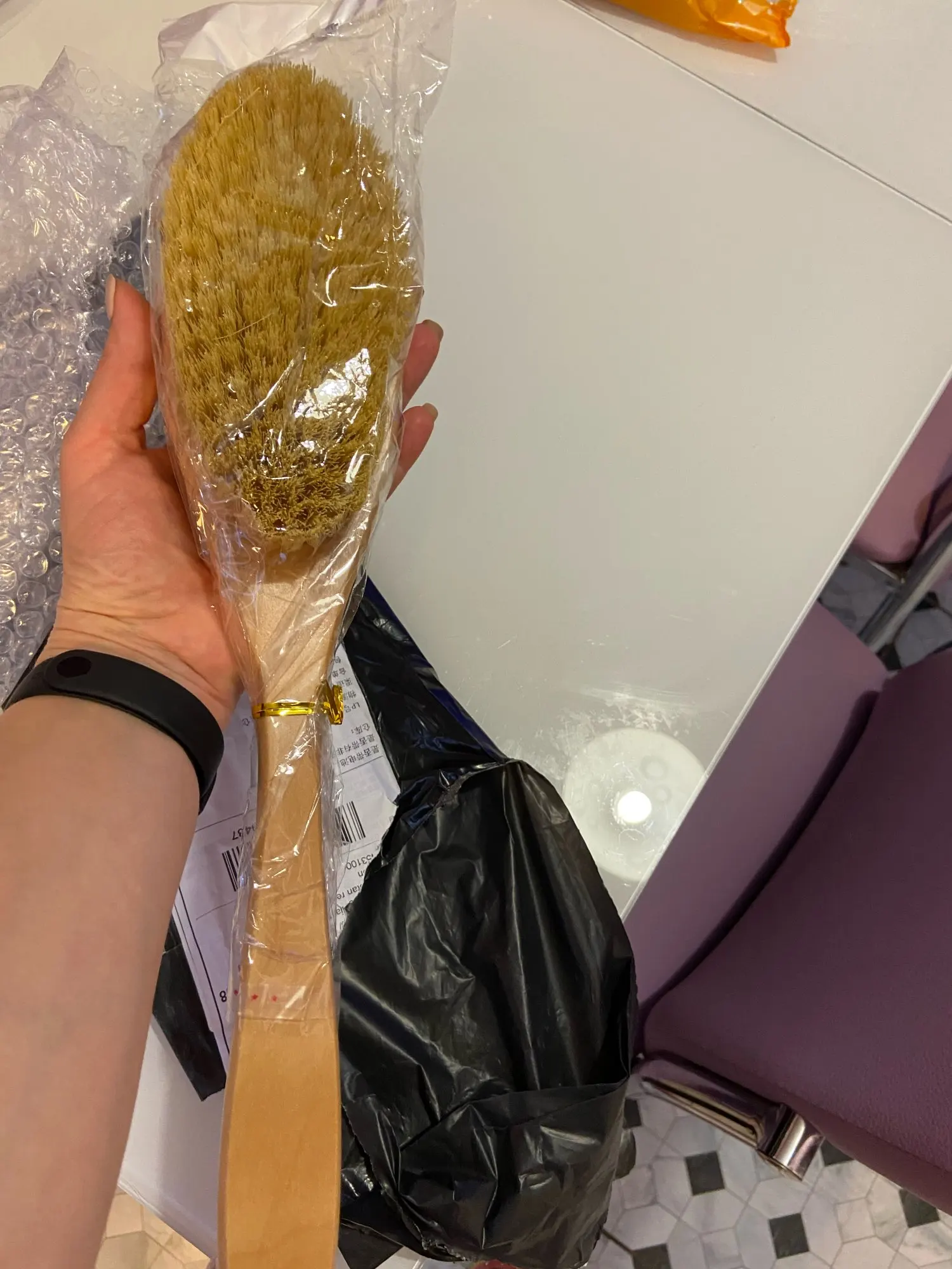 щётка хорошая, но когда я начала пробовать то полетела пыль,как будто крахмал или мука, и я когда ее мыла вода была мутная, но потом когда сделала массаж все было отлично) щеткой очень довольна спасиибо за качественный товар!
