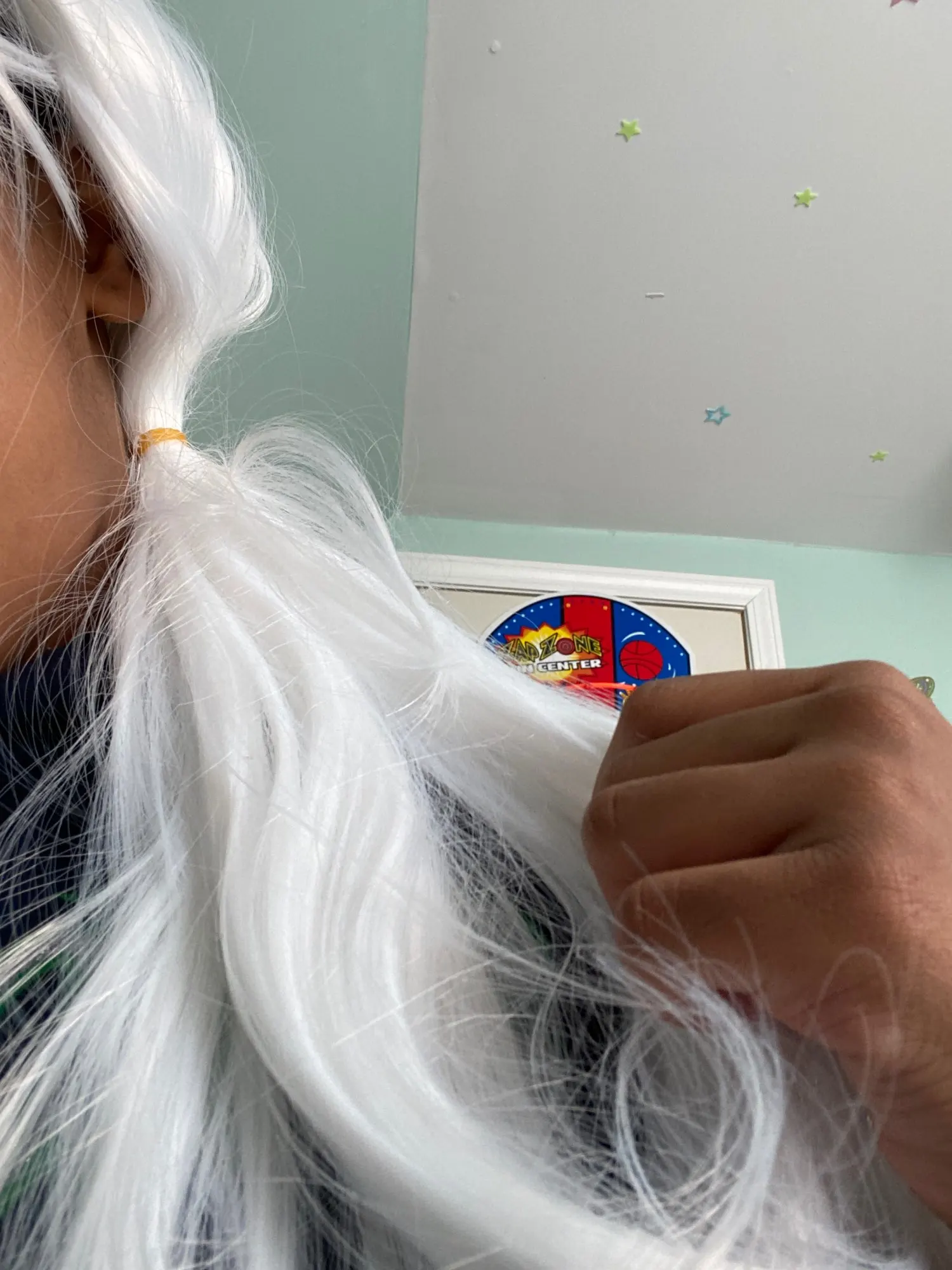 Очень замечательный парик Angie Yonaga, он пришел быстро (я заказал его на Рождество), и он поставляется с милым брелком и типом волос! Единственный РЕАЛЬНЫЙ низ-это после укладки задней части парика, вы можете увидеть шапку парика, но кроме того, это идеальный парик для моего косплея!