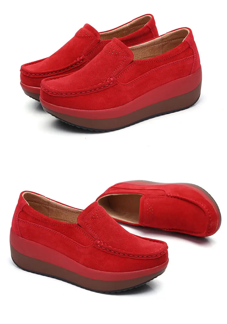 Women Flat Platform LoafersLadies Elegant Suede Leather Moccasins Shoes