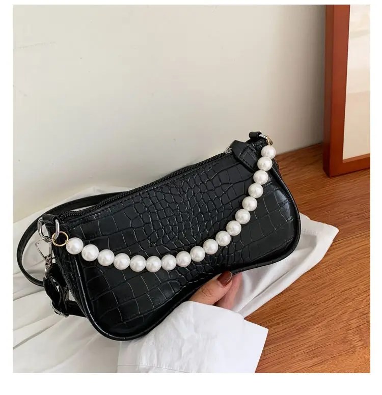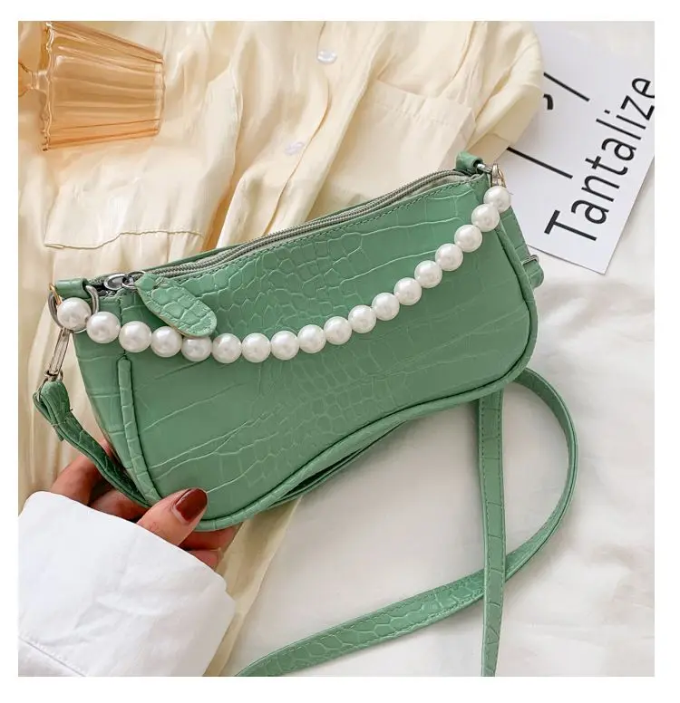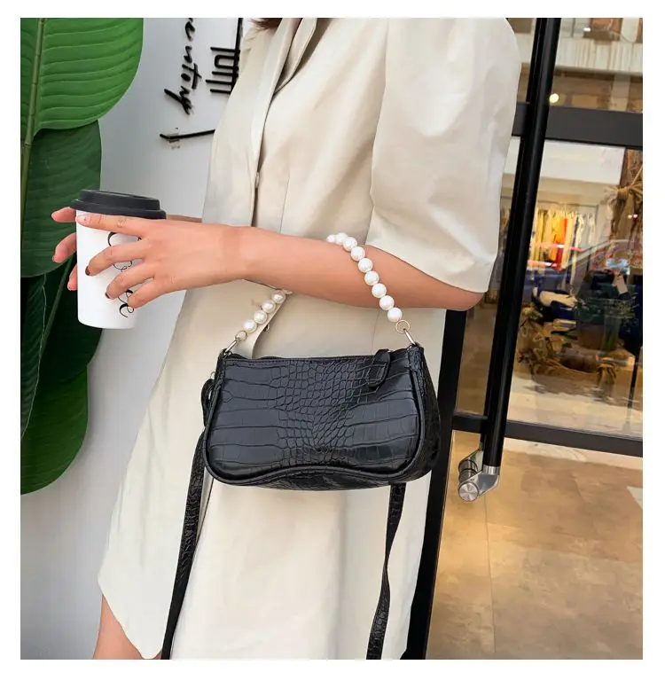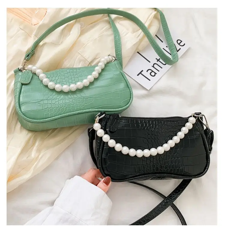 Маленькая женская сумка из искусственной кожи аллигатора в стиле ретро, сумка на плечо с коротким ремешком, сумочка-багет, S2207