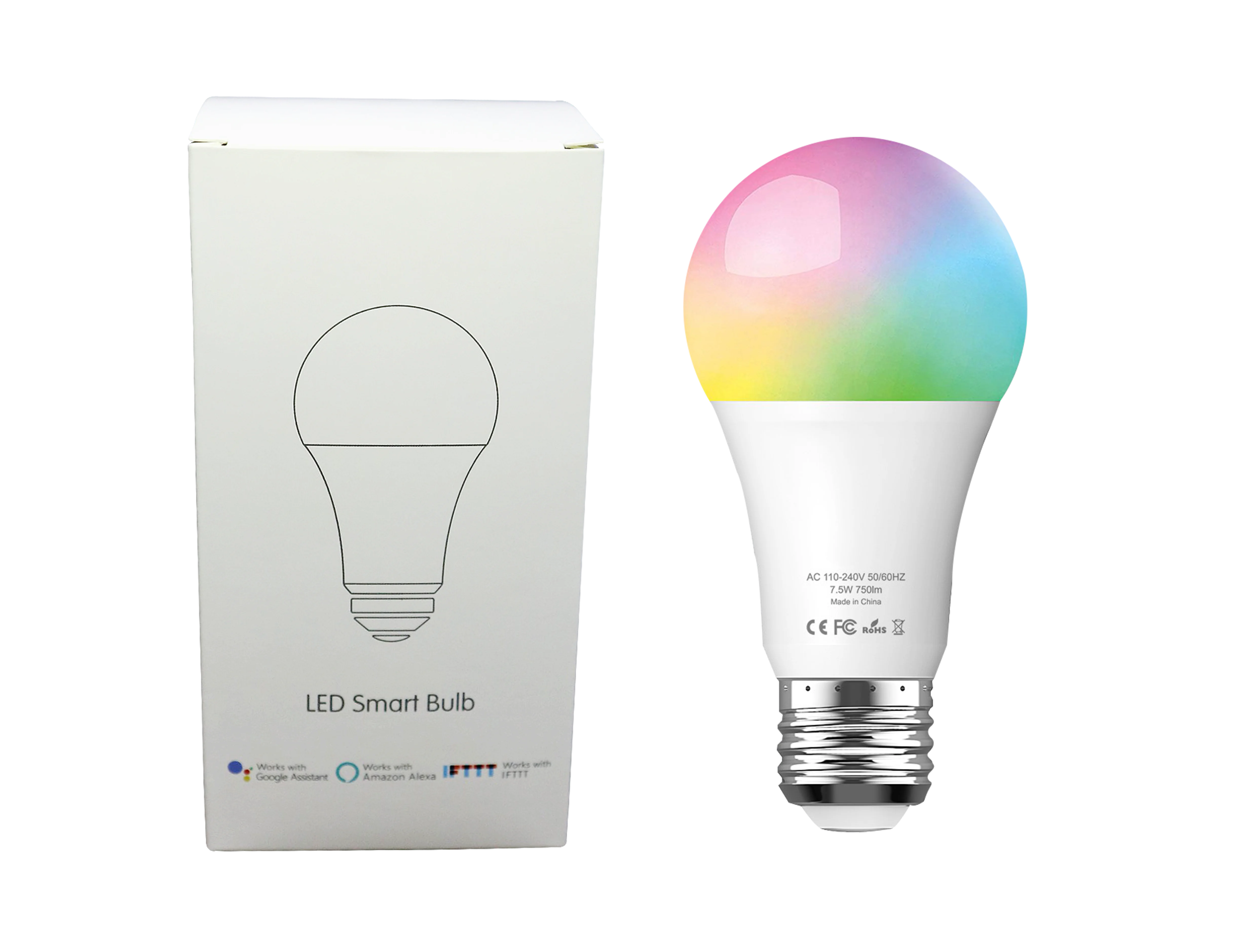 Стандарт: E27Вход напряжение: AC100-240V В переменного тока, 50/60 ГцМощность: 7,5 W 900lmЦветовая температура: RGB + 6000K холодный белыйБеспроводной Тип: Wi-Fi 2,4 ГГцСтандарт беспроводной связи: IEEE 802.11b/g/nЦвет изделия: белыйСрок службы: ≥ 50000 часов
