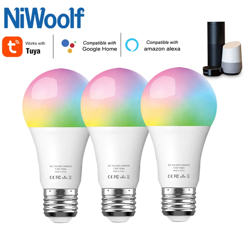 Tuya смарт-лампочка WiFi лампа E27 совместим с Alexa Google Home приложение Tuya светодиодный Таймер диммер контроллер для переменного тока 100-240V 7,5 W