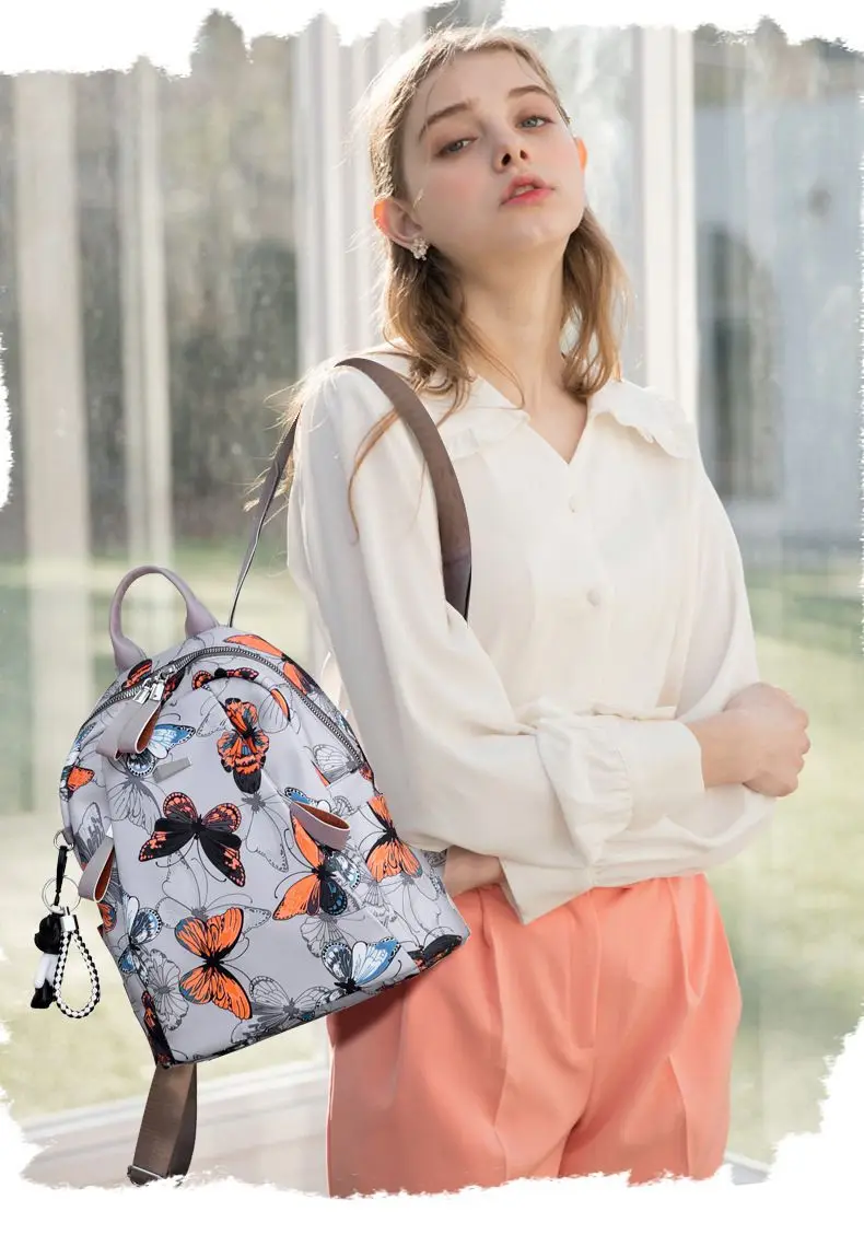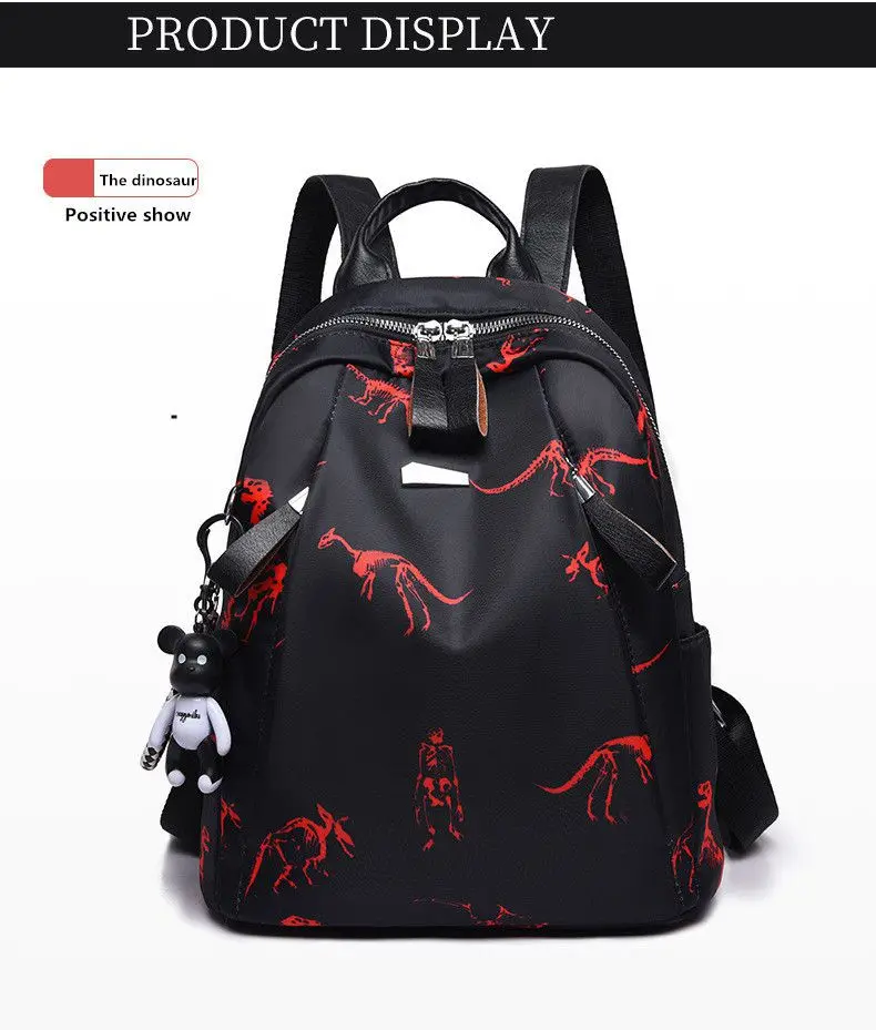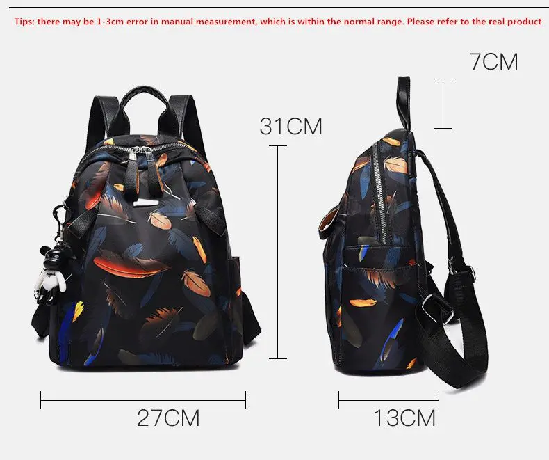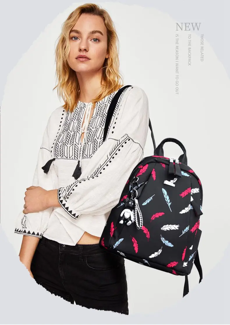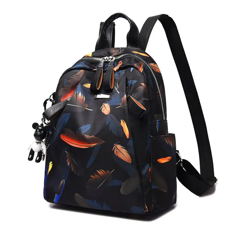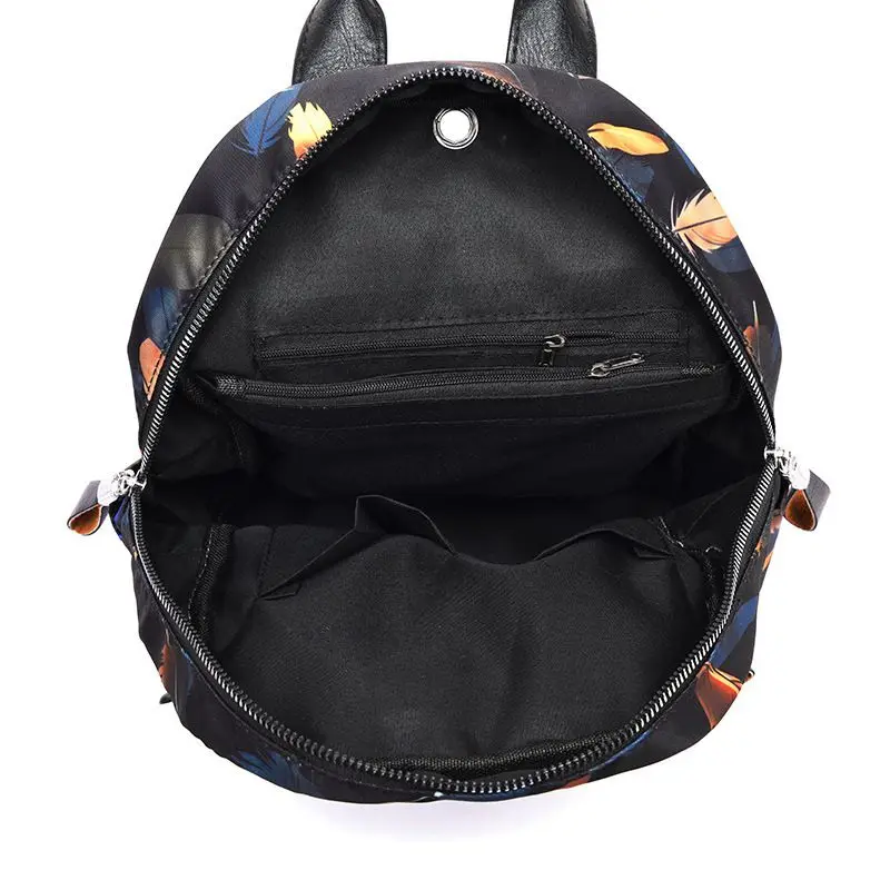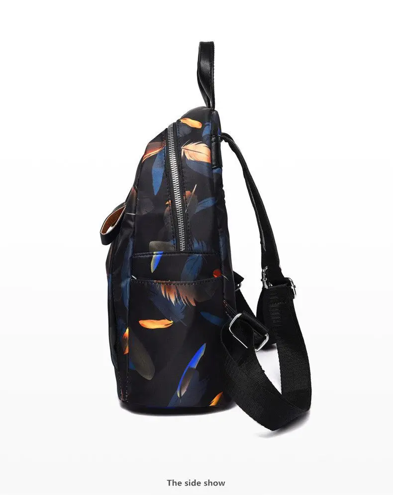 Рюкзак женский непромокаемый из ткани Оксфорд с принтом перьев и защитой от кражи