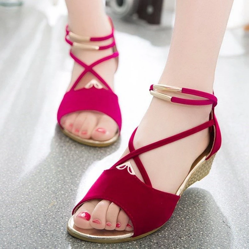 Женские сандалии в римском стиле, Новинка лета 2020, модные сандалии с открытым носом и застежкой-молнией сзади, замшевые сандалии на танкетке