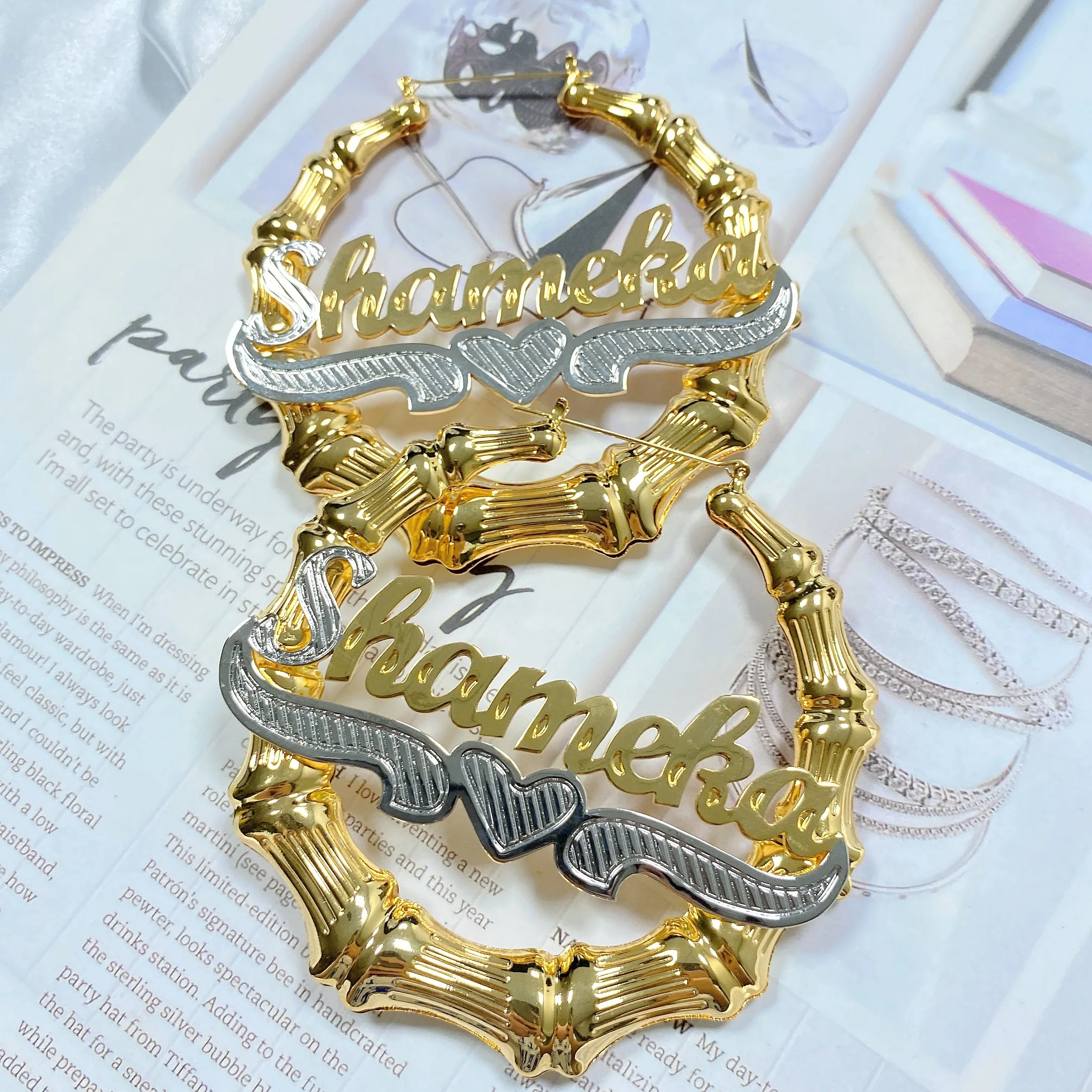 DUOYING 2021 Бамбуковые серьги с именем на заказ, персонализированные серьги в стиле хип-хоп ожерелье с буквами, Бамбуковые серьги с сердечками на заказ, набор ювелирных изделий, подарок