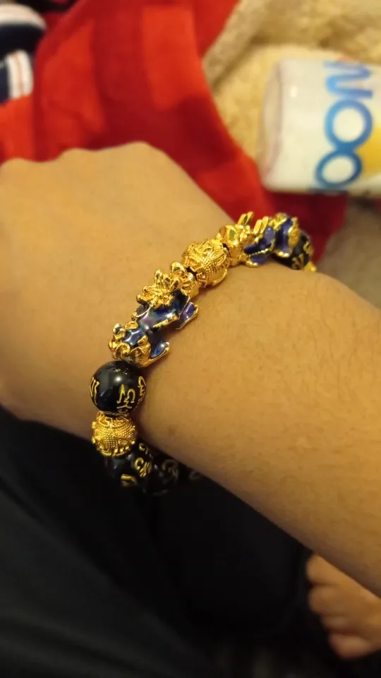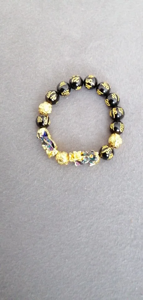 Браслет фэн-шуй, с каменными бусинами из обсидиана, золотой, черный, Pixiu, богатство, удача, для женщин, для мужчин, женщин, унисекс