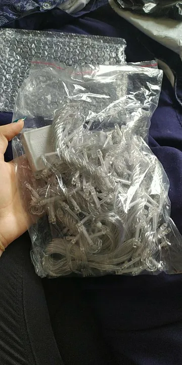 Гірлянди штори чудові. Швидка доставка, 17 днів. Надіслані в м'якій упаковці. Красиво виглядають, напівпрозорі провода, є перехідник для підключення кількох гірлянд.