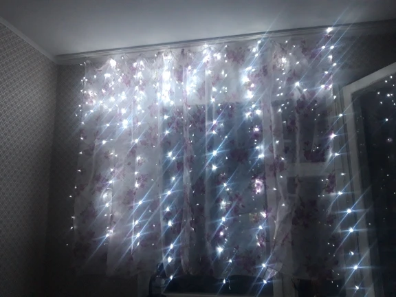 Красивая гирлянда. Очень приятный белый цвет. Мне очень понравилась. Хорошее качество. Буду заказывать ещё. Доставка в Харьков за 18 дней. Рекомендую
