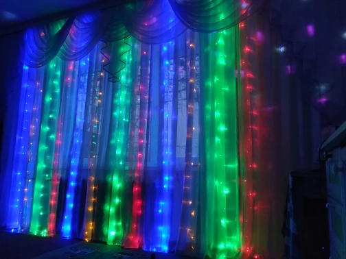 Заказывала 2 гирлянды размер 3*3. Заказ пришёл за 2 недели. Но одна гирлянда не работала. Продавец отправил новую, но не верного размера.