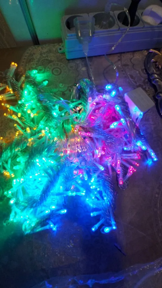 Отличная гирлянда!! Смотрится красиво!! Заказывала желтый свет, очень приятный!! Доставили за 22 дня, раньше установленного срока. Из Китая отправили в течении 3х дней, остальное время путешествовала по России. Шнур с вилкой очень короткий- 60см, обязательно нужен удлинитель.