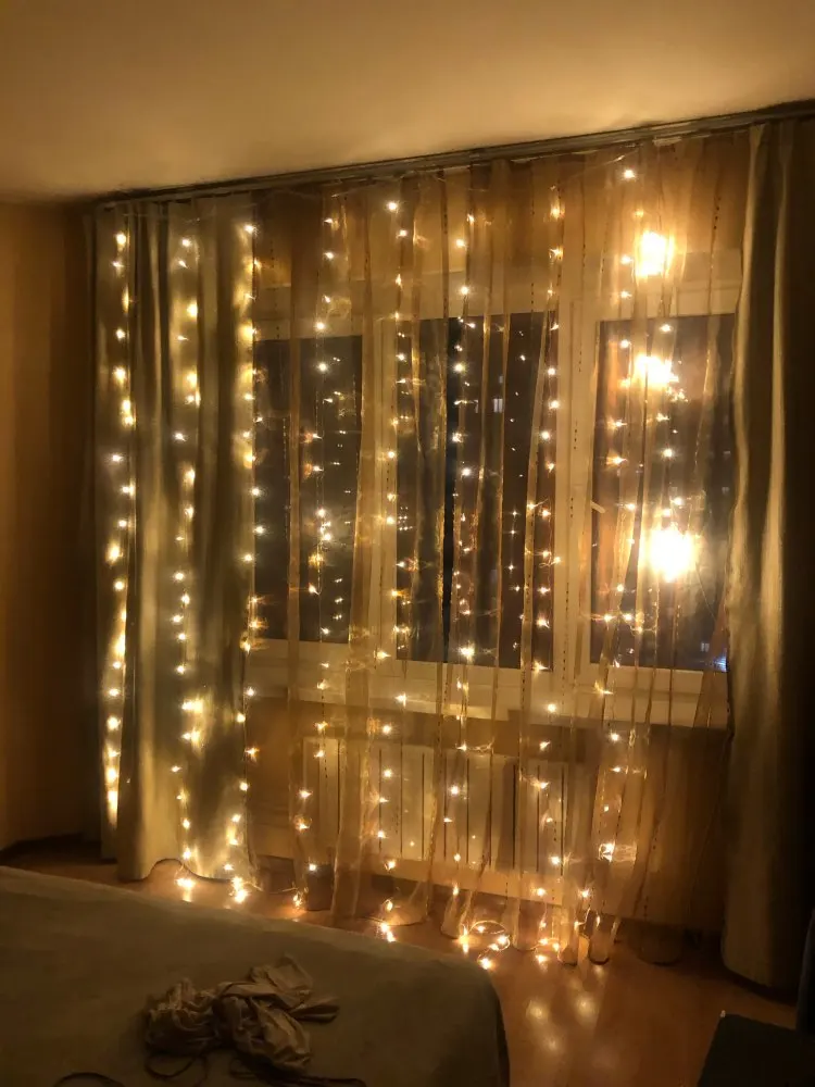 Занавесу 100 баллов из 100! Искала именно в оплётке, потому что просто диодные огоньки на металлической проволоке недолговечны. Один маленький минус, очень короткий шнур, розетка должна быть под потолком видимо))) Упаковка надежная, все пришло целое.