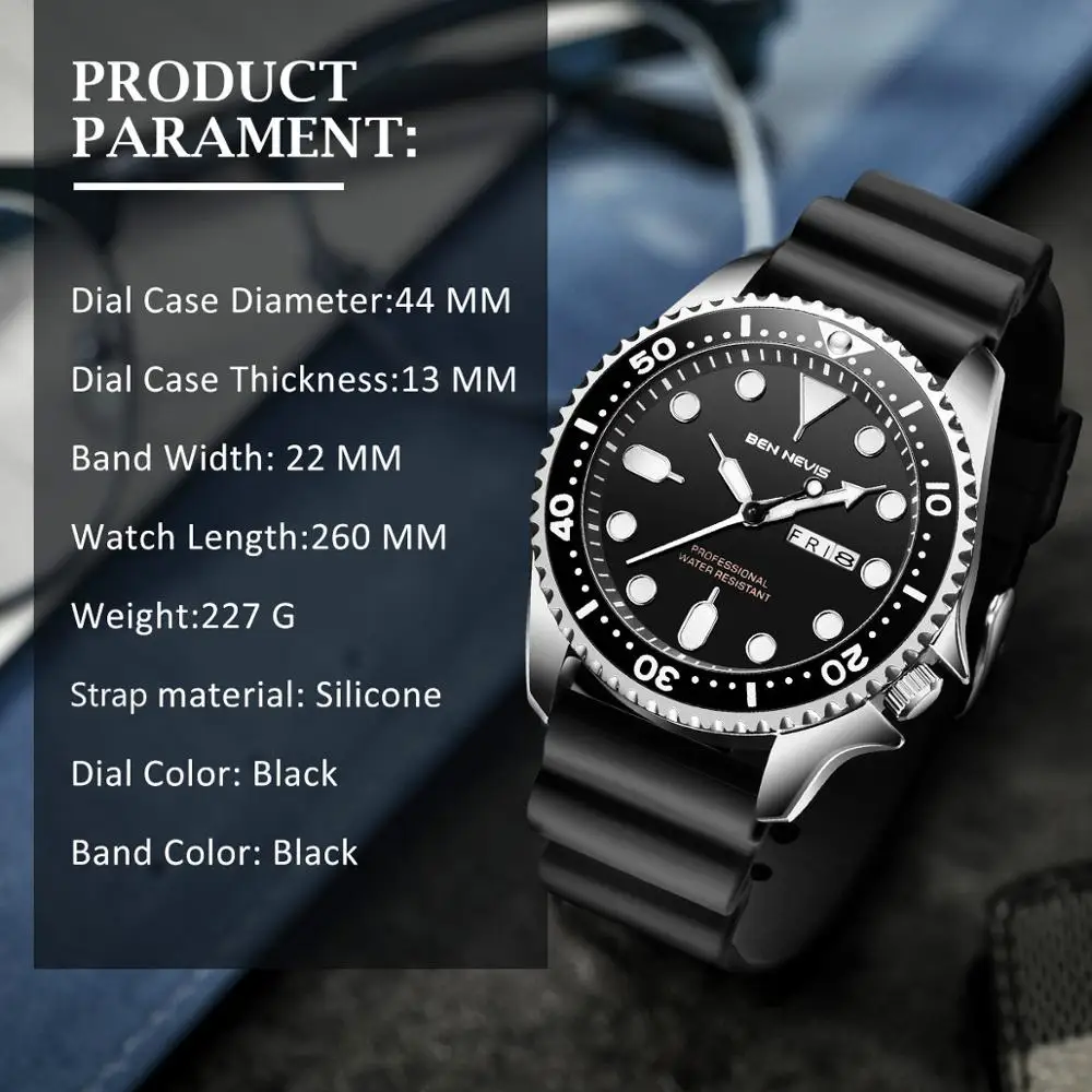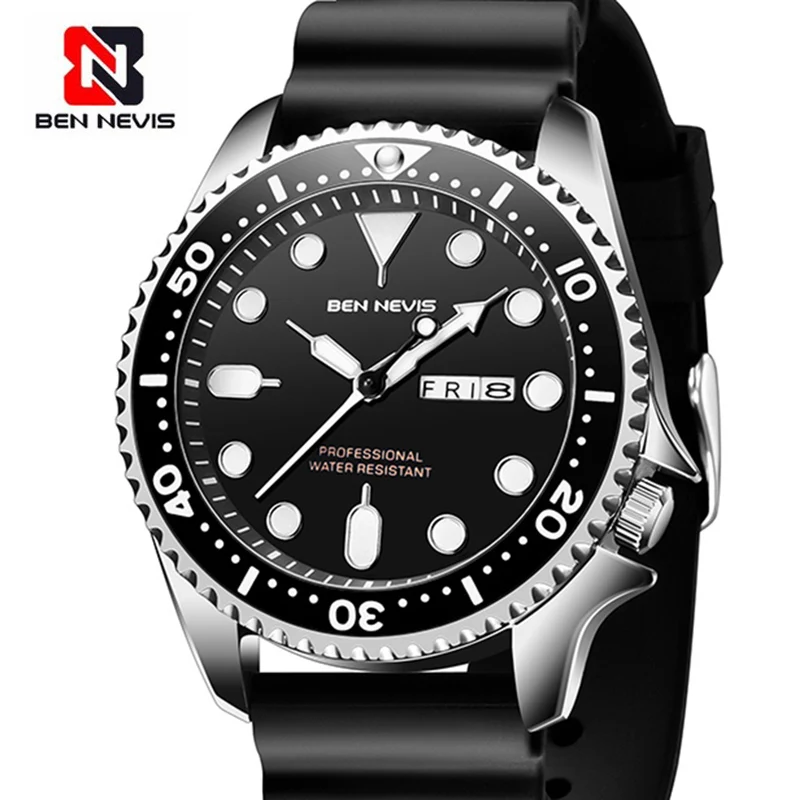 Мужские Аналоговые кварцевые часы Бен-неви с датой, светящиеся стре...