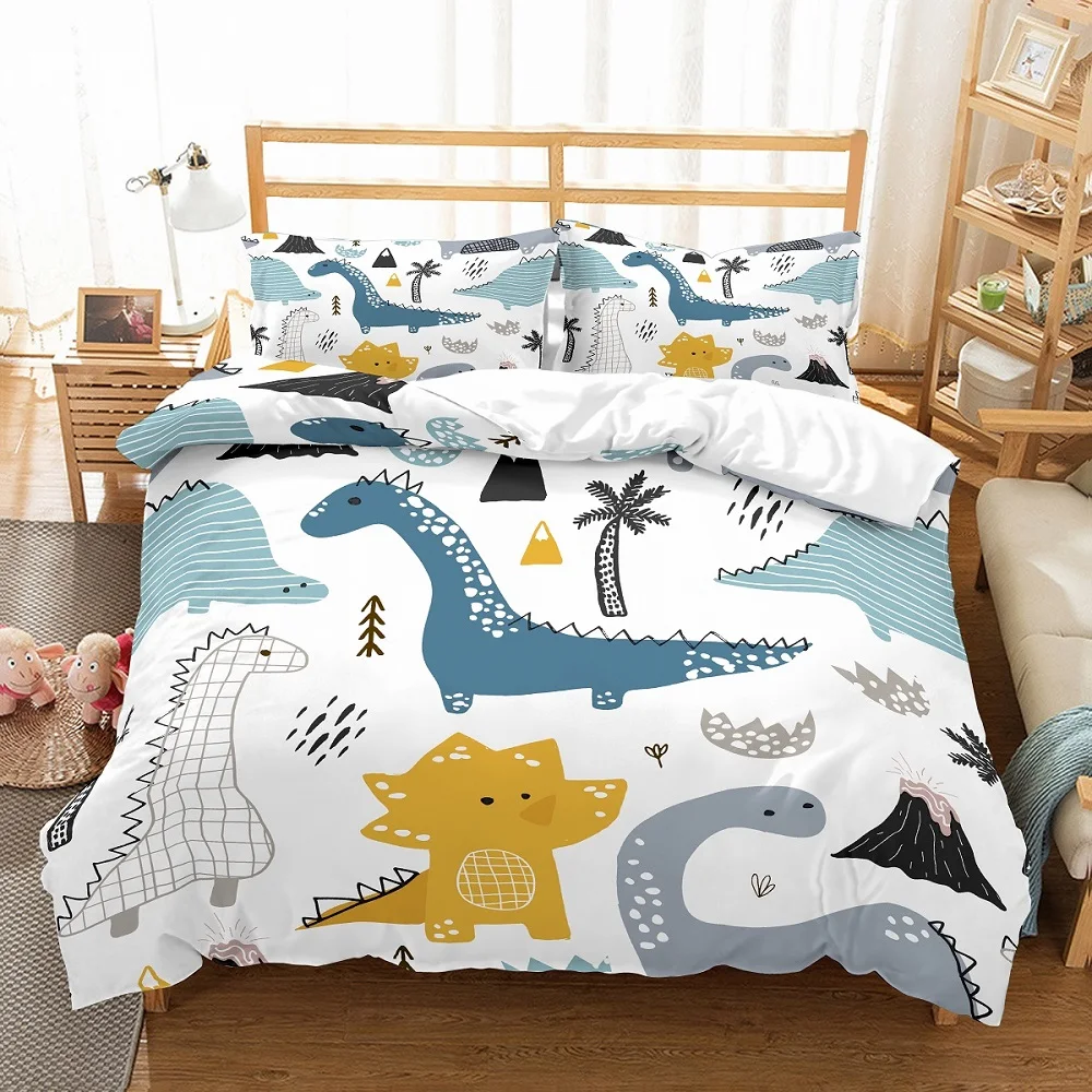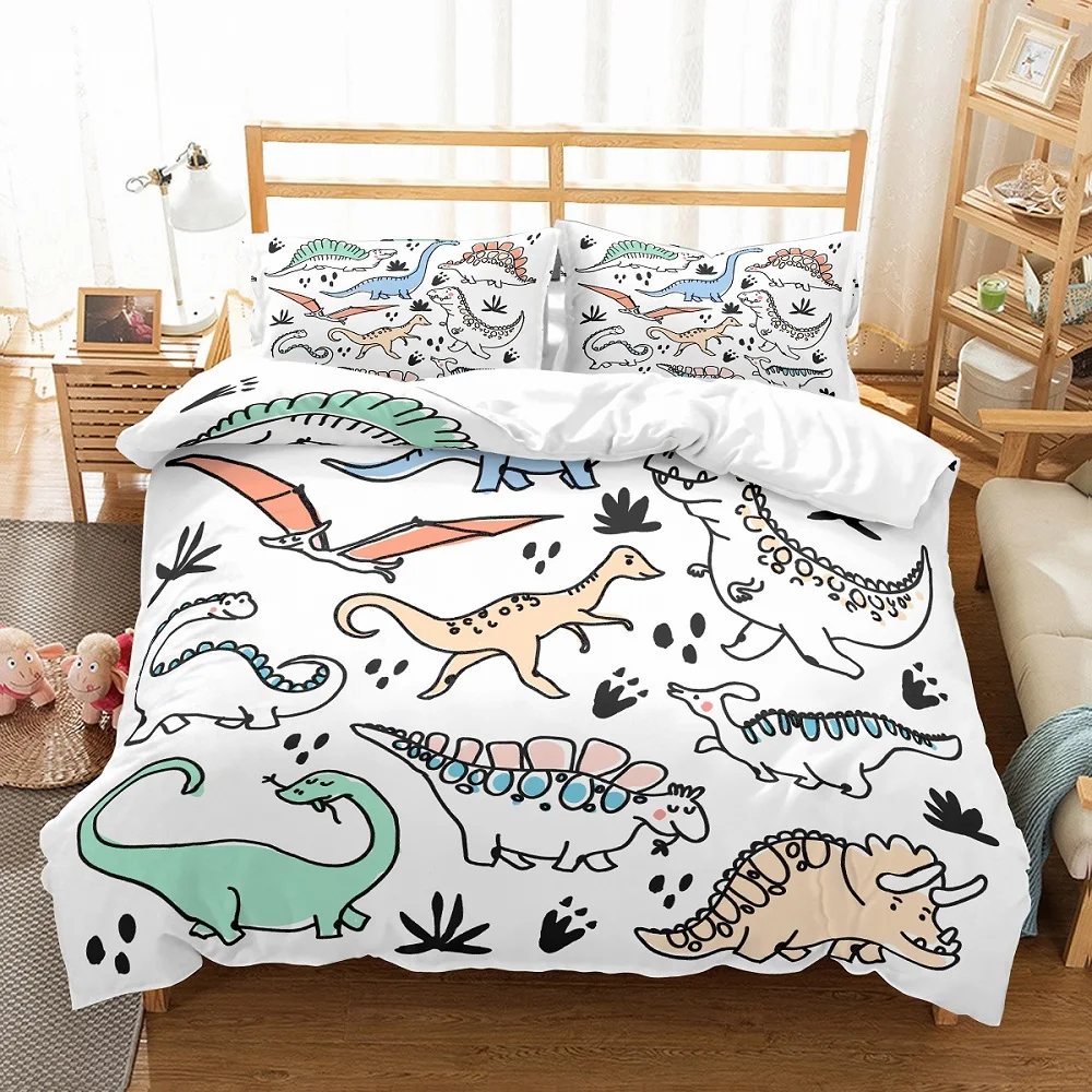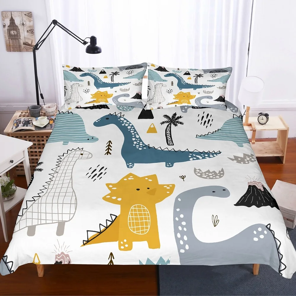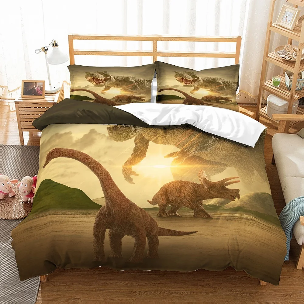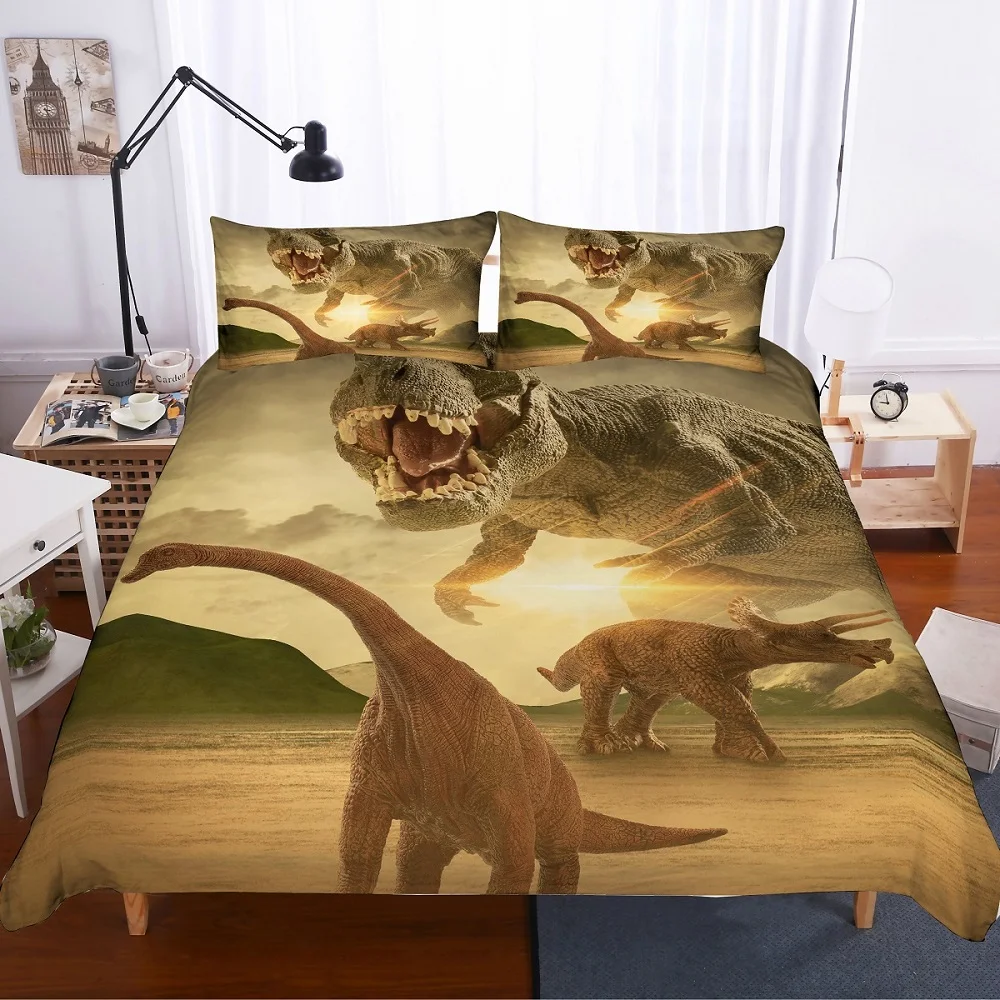 Счастливые сны каждый день с супер удобной 3D цифровой печатью динозавра постельные принадлежности набор пододеяльник!