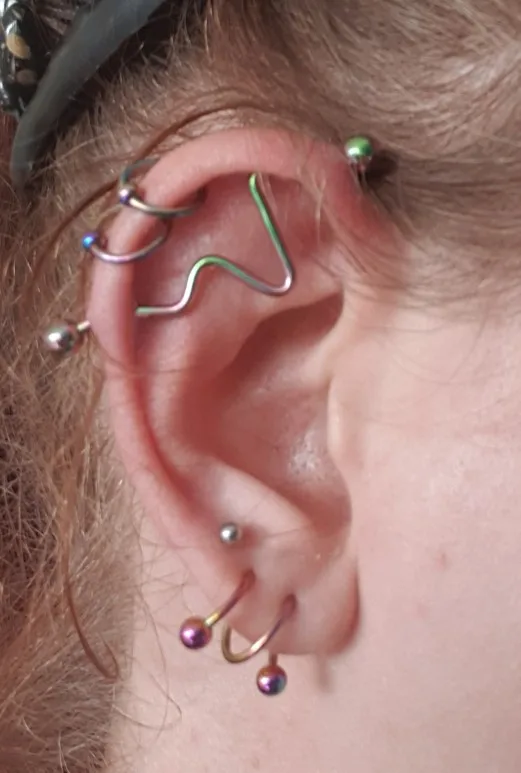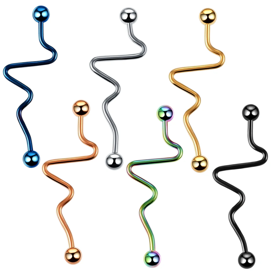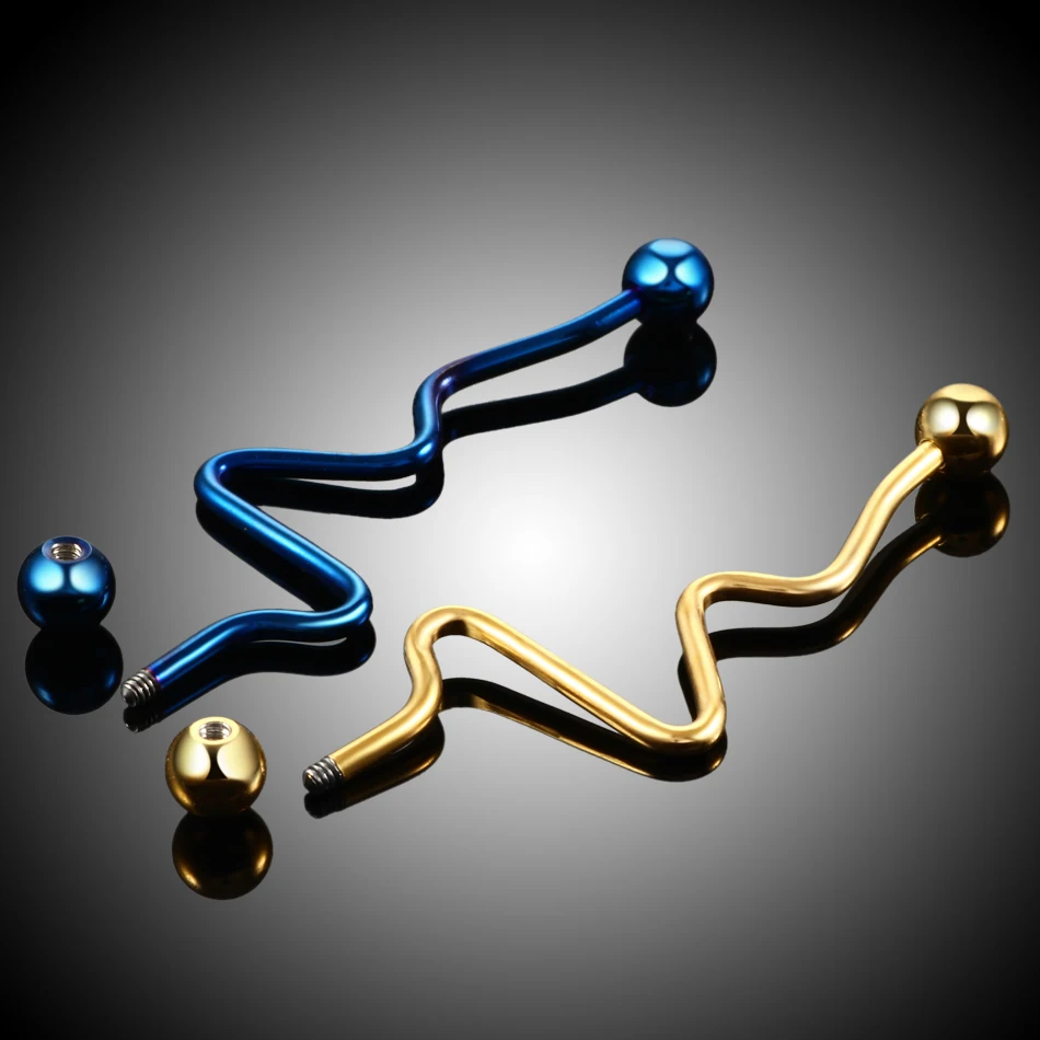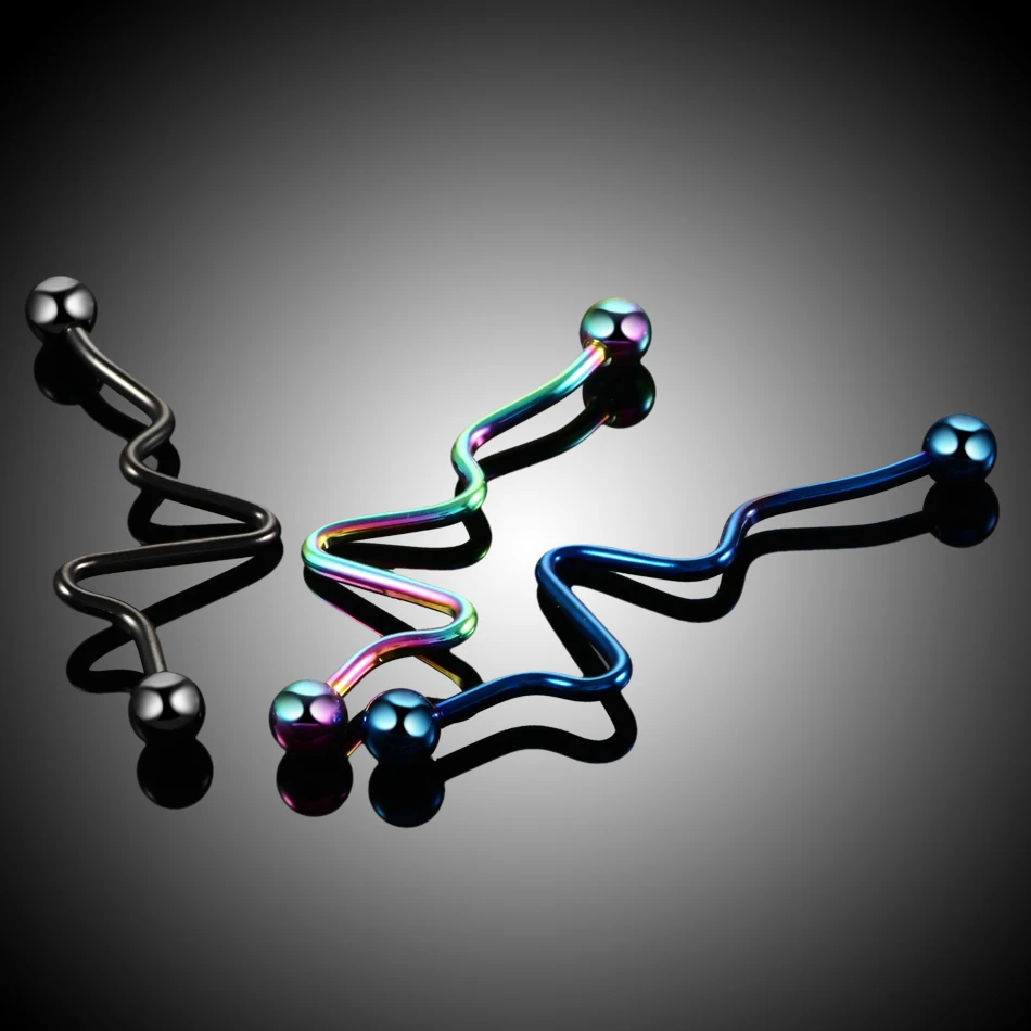 Серьга-штанга для пирсинга В индустриальном стиле уха с изгибом зиг...
