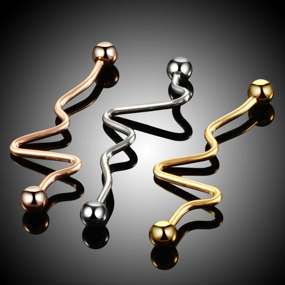 Спиральные серьги для пирсинга живота, хирургическая сталь, 14 г, 1...