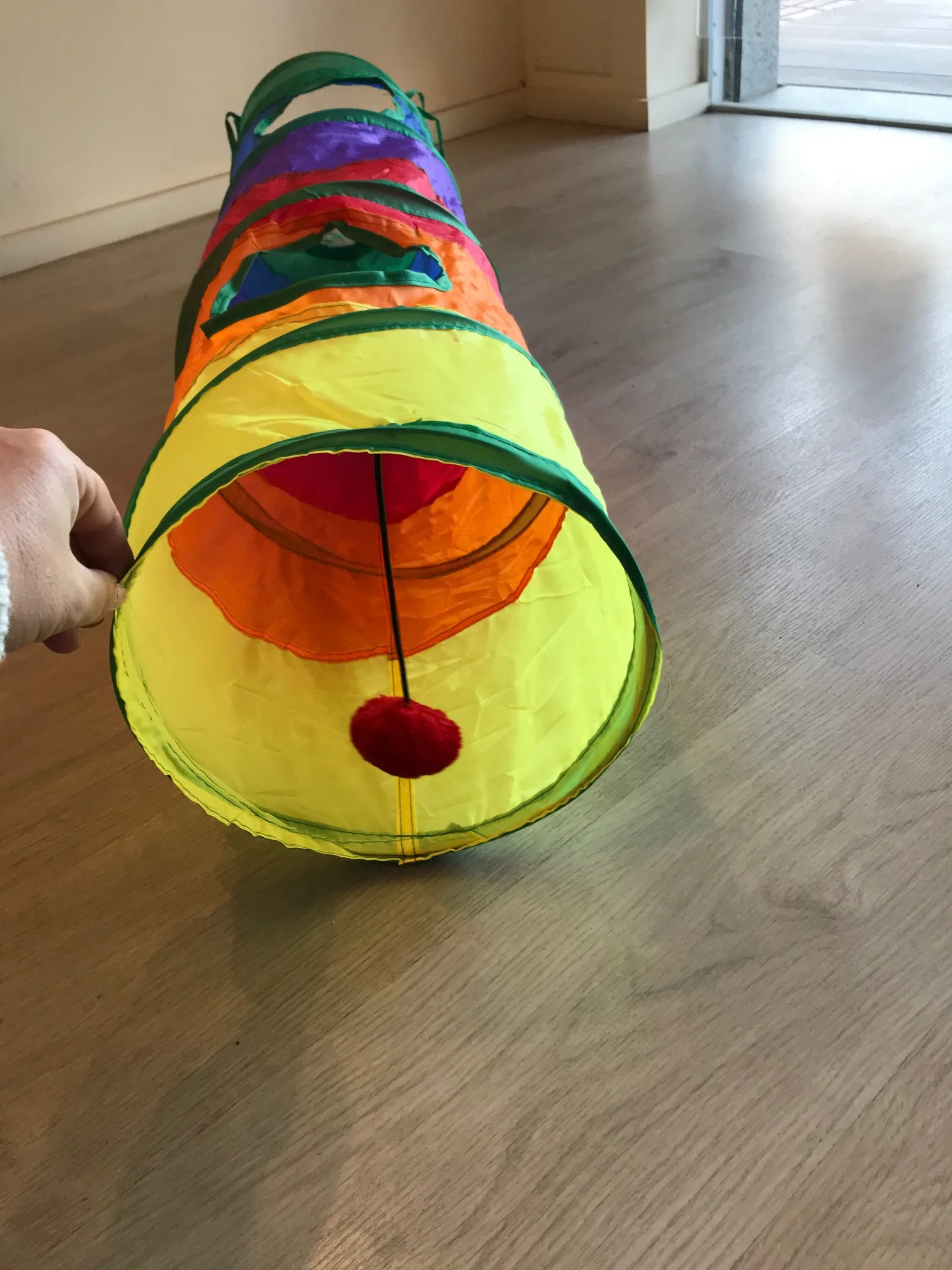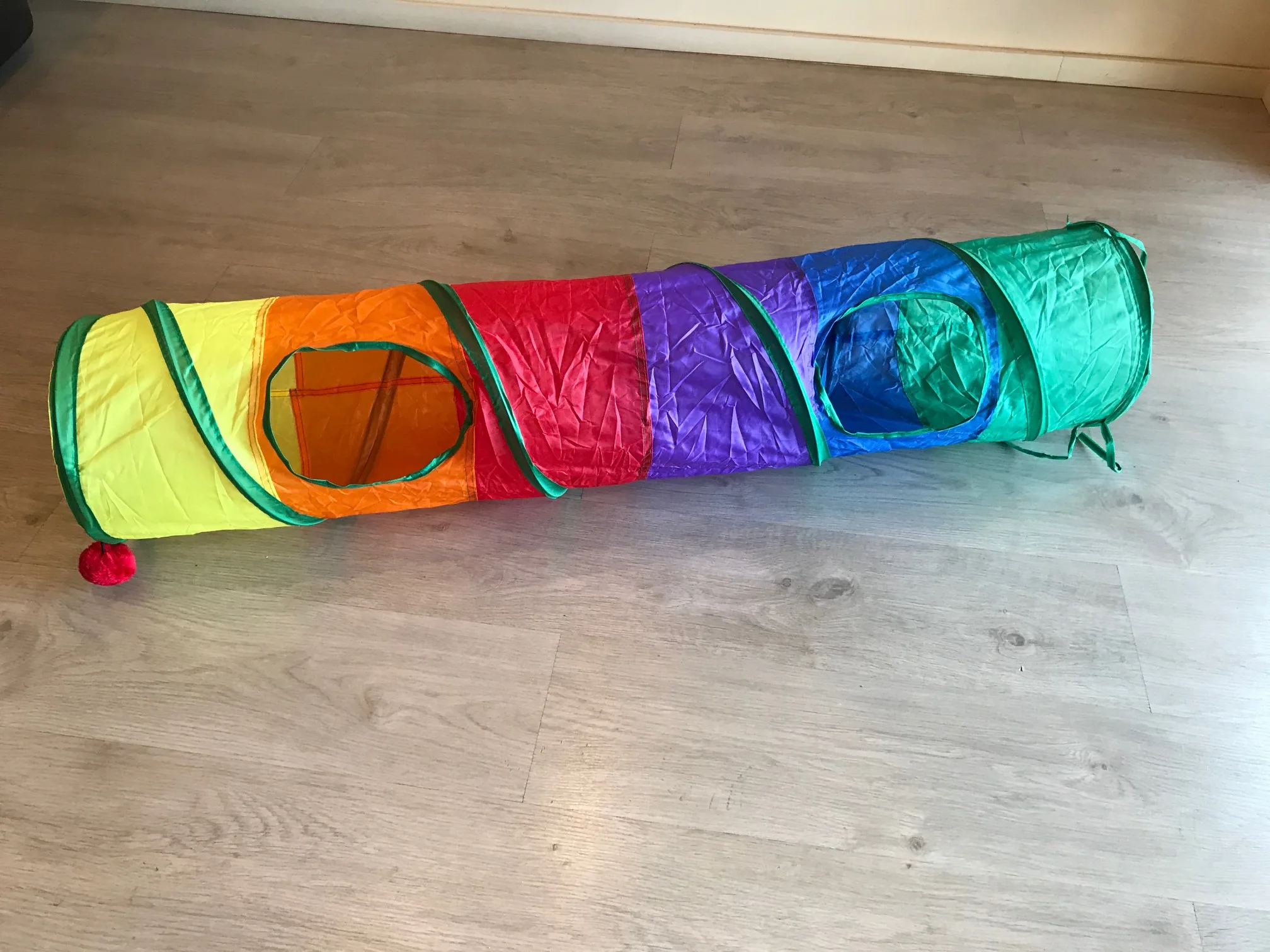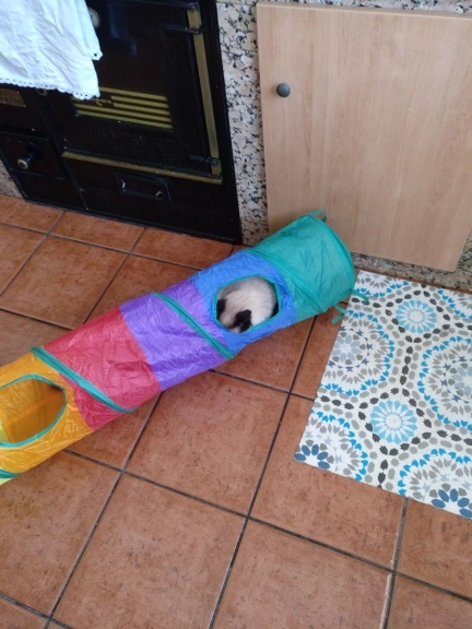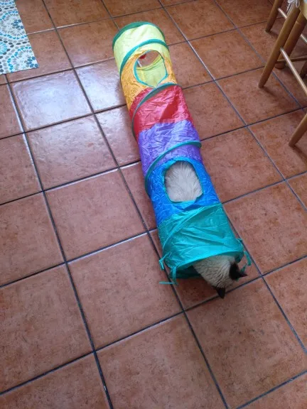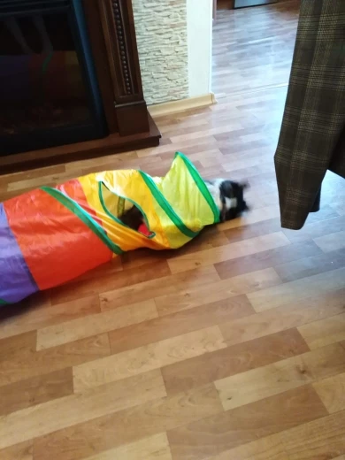 Туннель супер, сделан хорошо, котёнку очень понравился, запрыгивает с разбегу , особенно нравятся боковые отверстия ))) покупкой довольны ! Доставка пришла тоже достаточно быстро, около 3 недель. Продавец контактный, отвечает на все вопросы. Рекомендую.