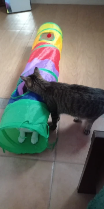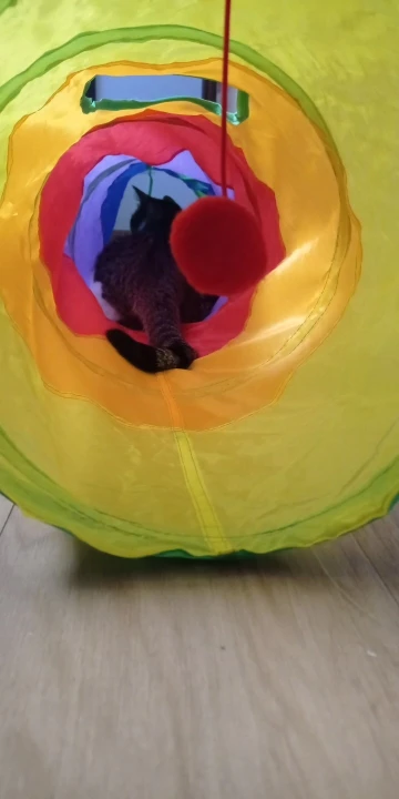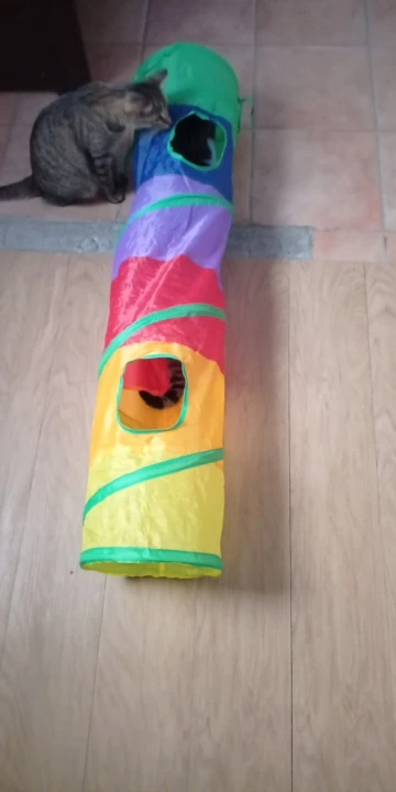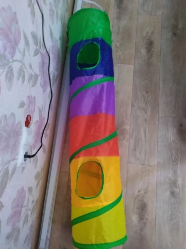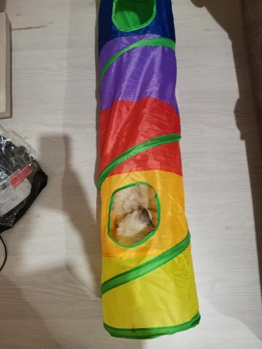 Муж не хотел коту тоннель брать,теперь сам с ним играет.Кошки же обожают коробки,тоннель сразу пошел в дело,в коридоре кот залазит,скрывается и ловит всех.Погрыз окошки,но ничего страшного,не разваливается.В общем,отлично,берите радовать пушистых.