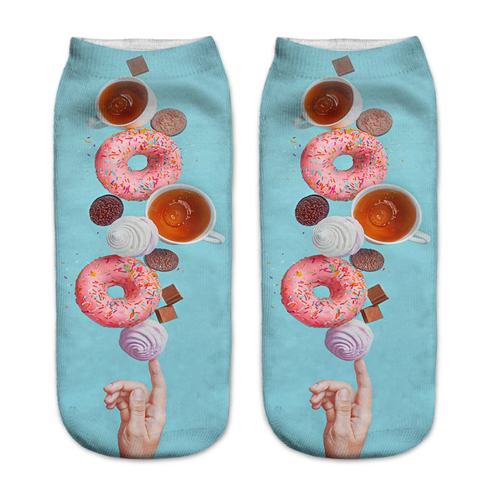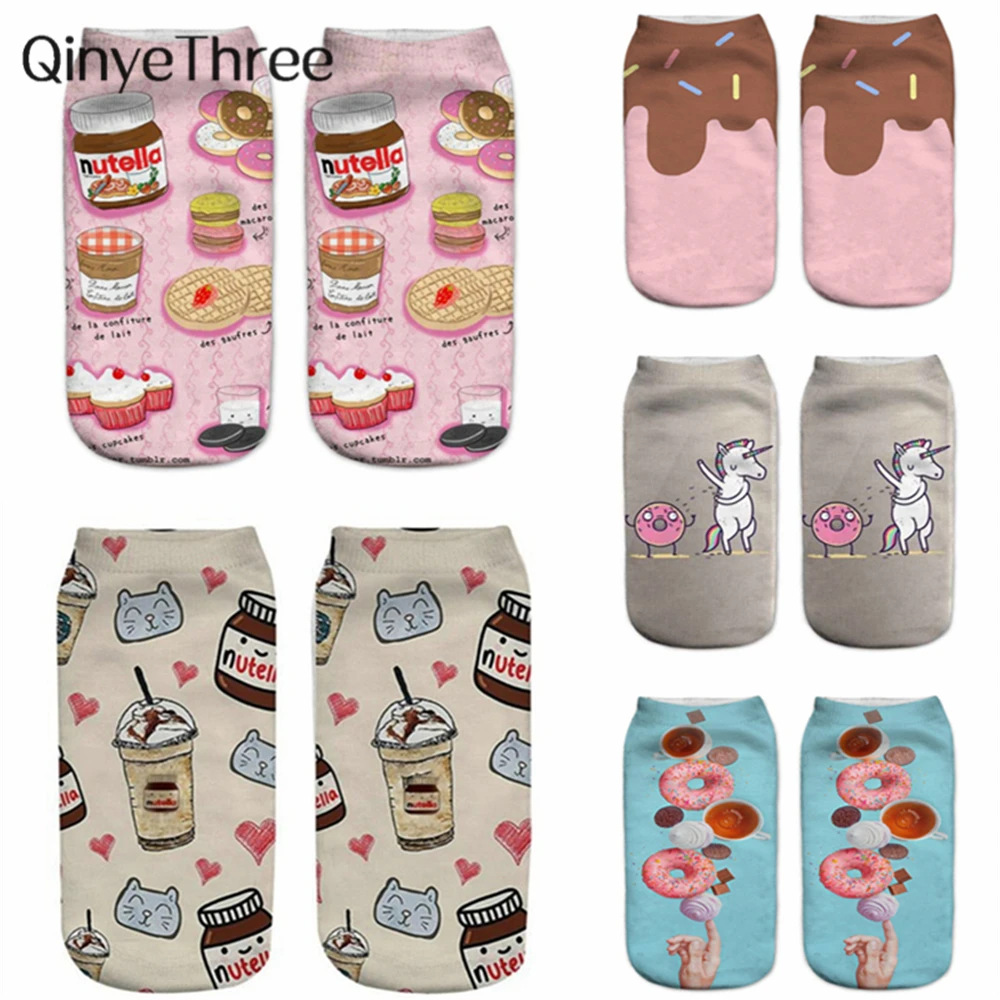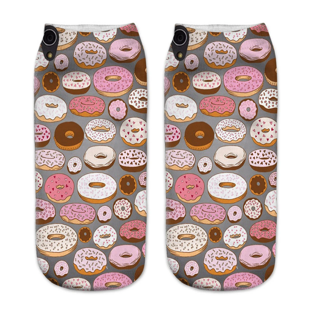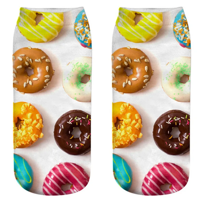 Новые 3D носки с изображением пончиков Nutella Еды Фруктов женские милые бриллианты до щиколотки счастливые носки унисекс носки в стиле Харадзюку