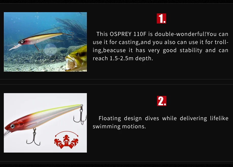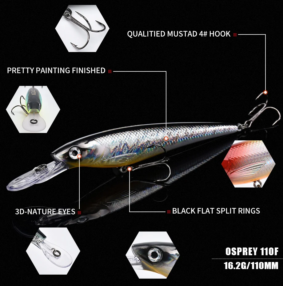 Искусственная приманка ALLBLUE OSPPEY, 110F, троллинг на маленькую рыбешку, 110 мм, 16,2 г, рыболовные приманки плавающий, воблер на щуку, Глубина 1,5-2,5 м