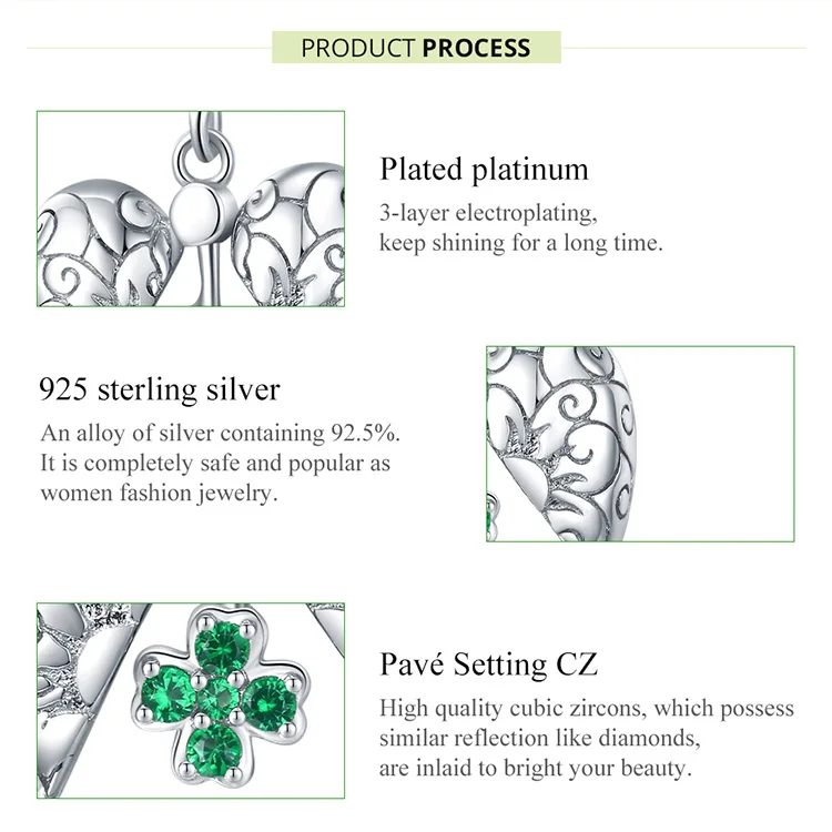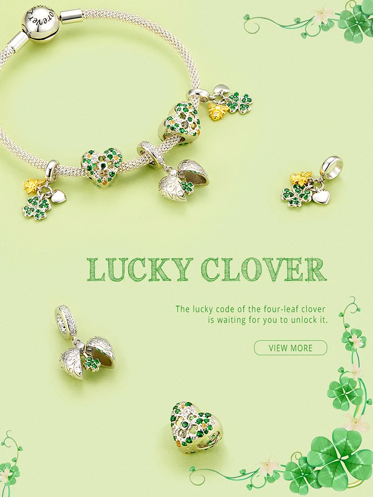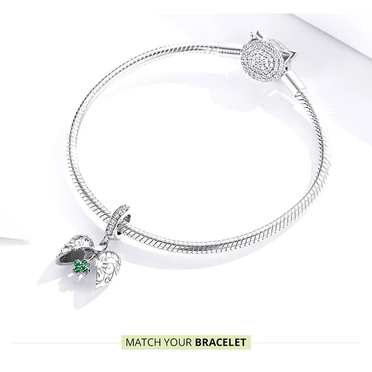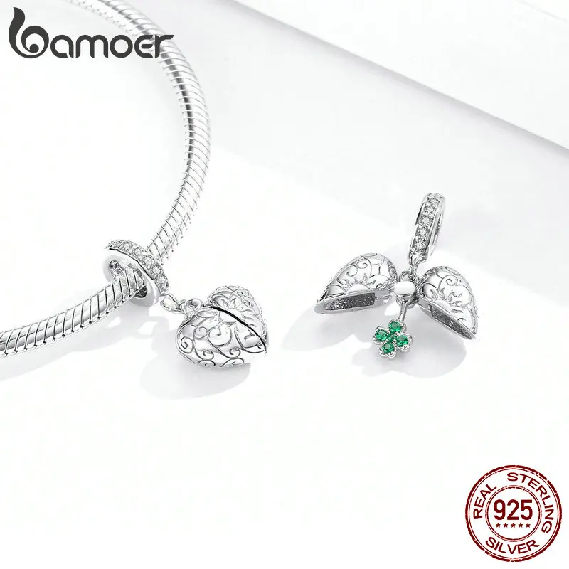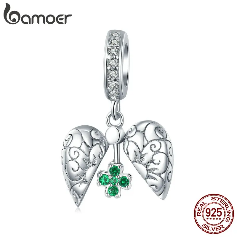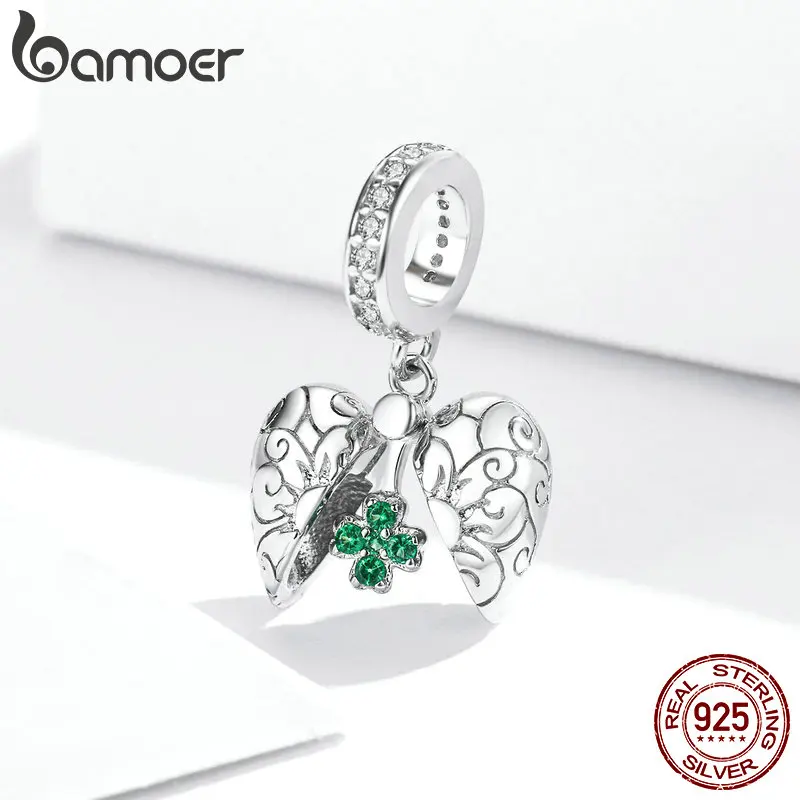 Подвеска bamoer Fantasy Castle из подлинного стерлингового серебра 925 пробы с подвеской в виде счастливого клевера для браслета или ожерелья, ювелирные украшения BSC302