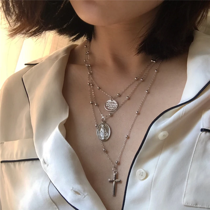 Богемное ожерелье с крестом для женщин и мужчин, многослойная подве...