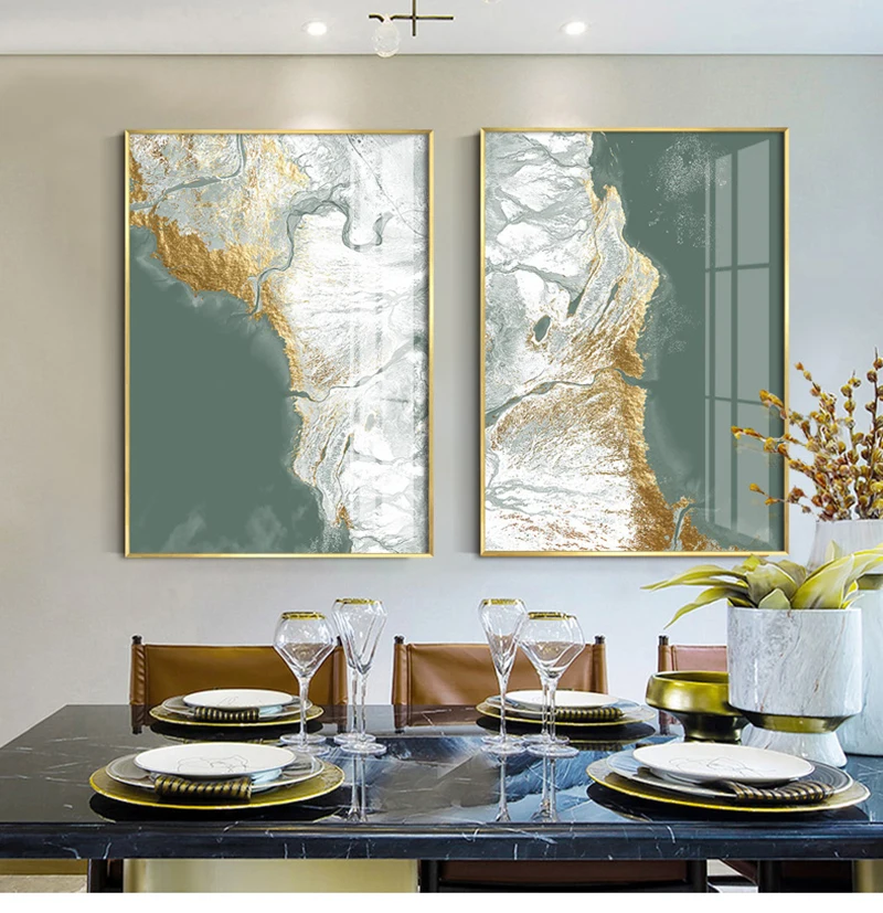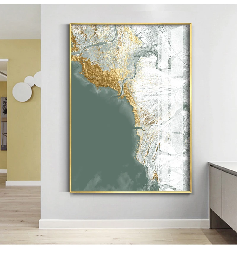 Современный абстрактный постер с зеленым морем и золотым ландшафтом, роскошные принты, Картина на холсте, Настенная картина для декора гостиной