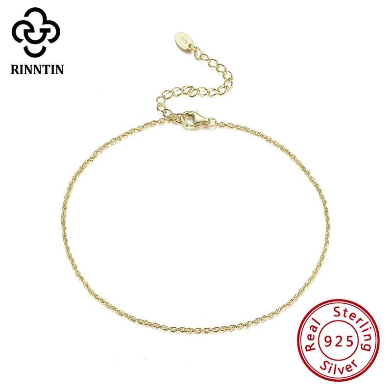 Rinntin реальные 925 пробы серебро Мода нежный Workmanship14K плакировкой золота браслет цепь для женщин Свадебные ежедневные TSA06