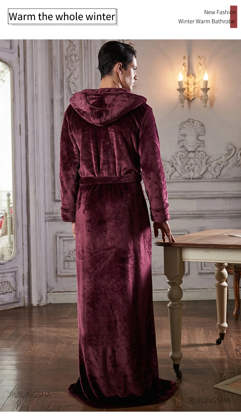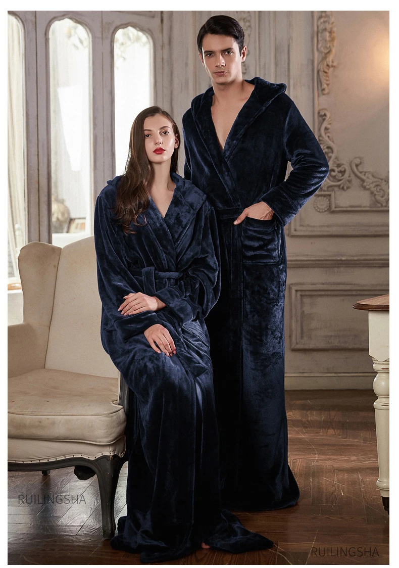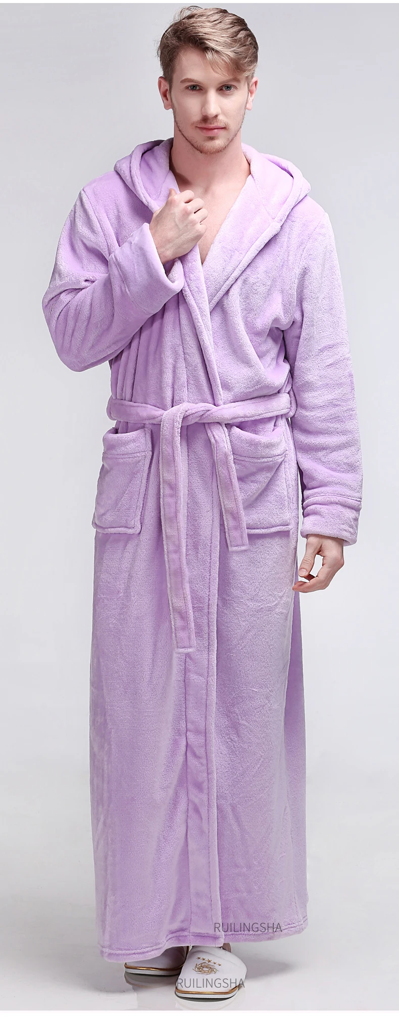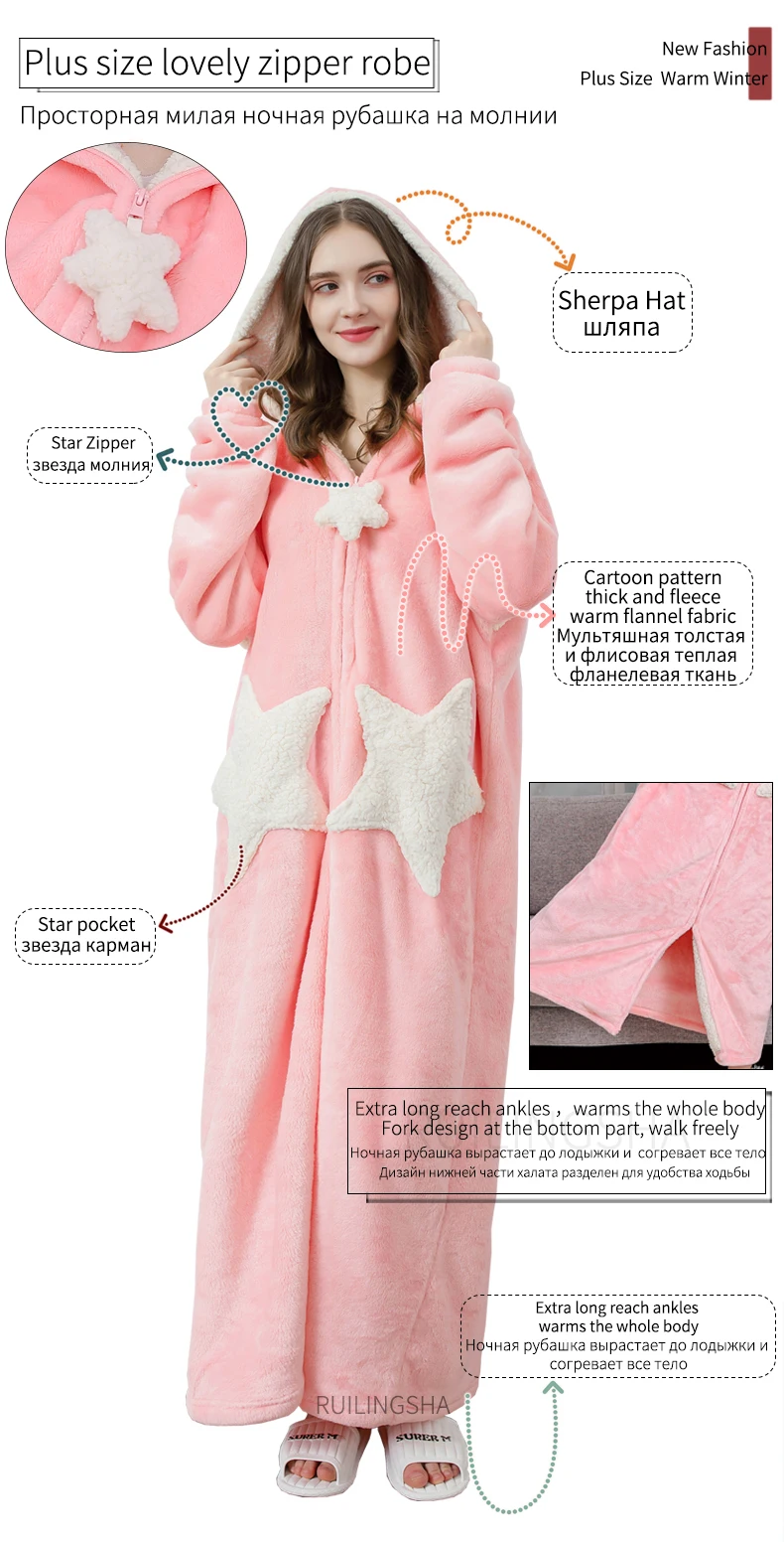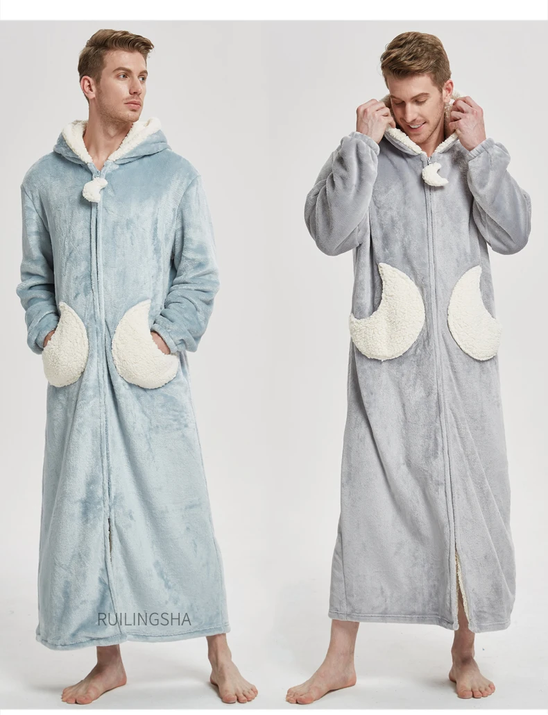 Мужской супердлинный фланелевый банный халат с капюшоном, зимний теплый банный халат на молнии со звездами, Мужская одежда для сна, женский халат