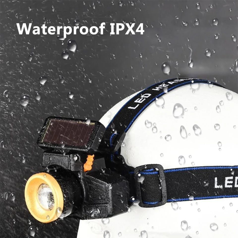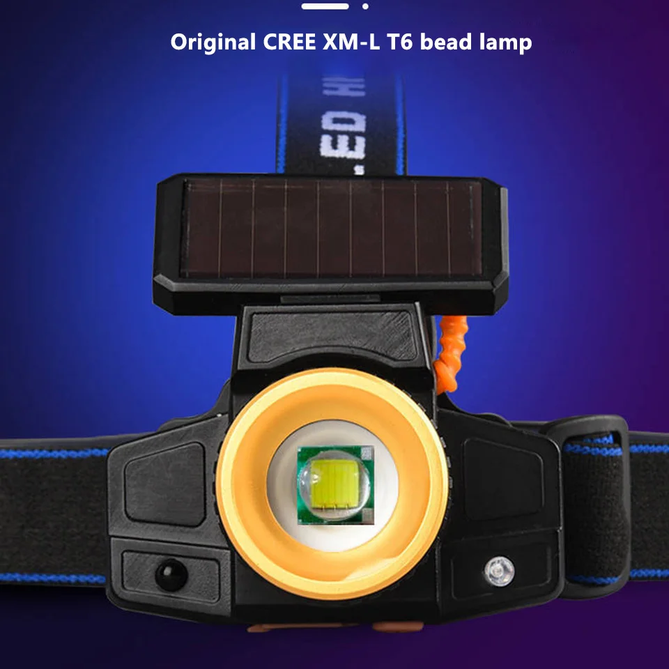 Светодиодный налобный фонарь с солнечным датчиком, Перезаряжаемый Usb встроенный аккумулятор 18650, налобный фонарь с зумом, водонепроницаемый фонарь XM-L T6