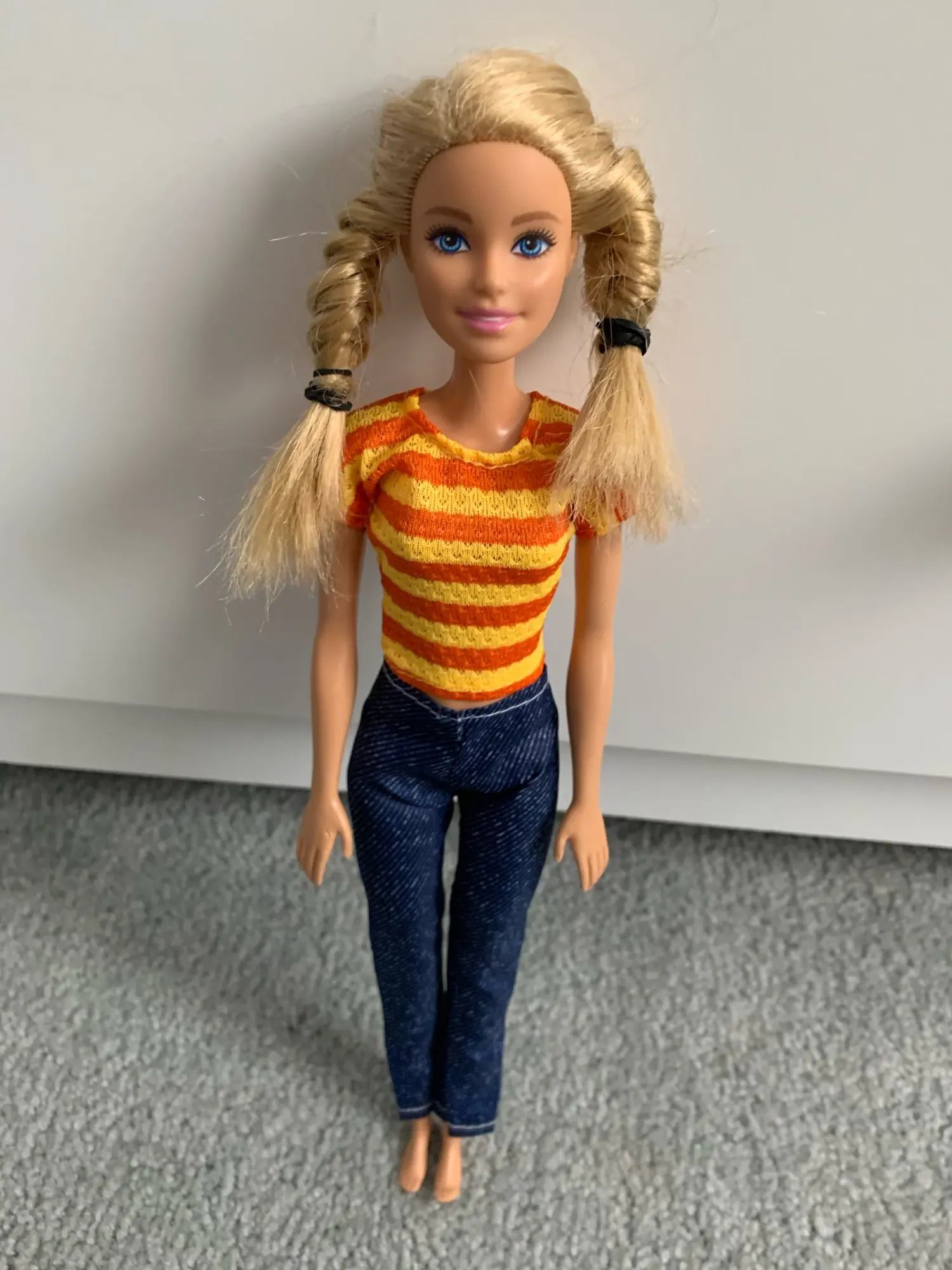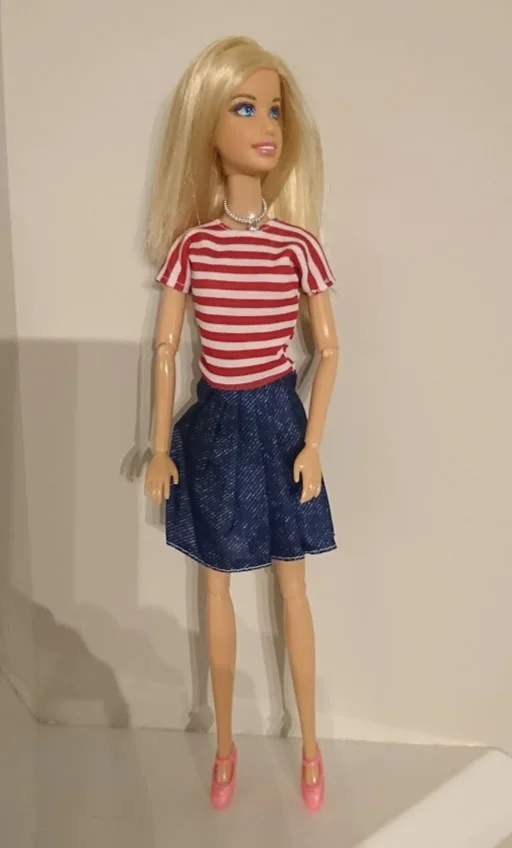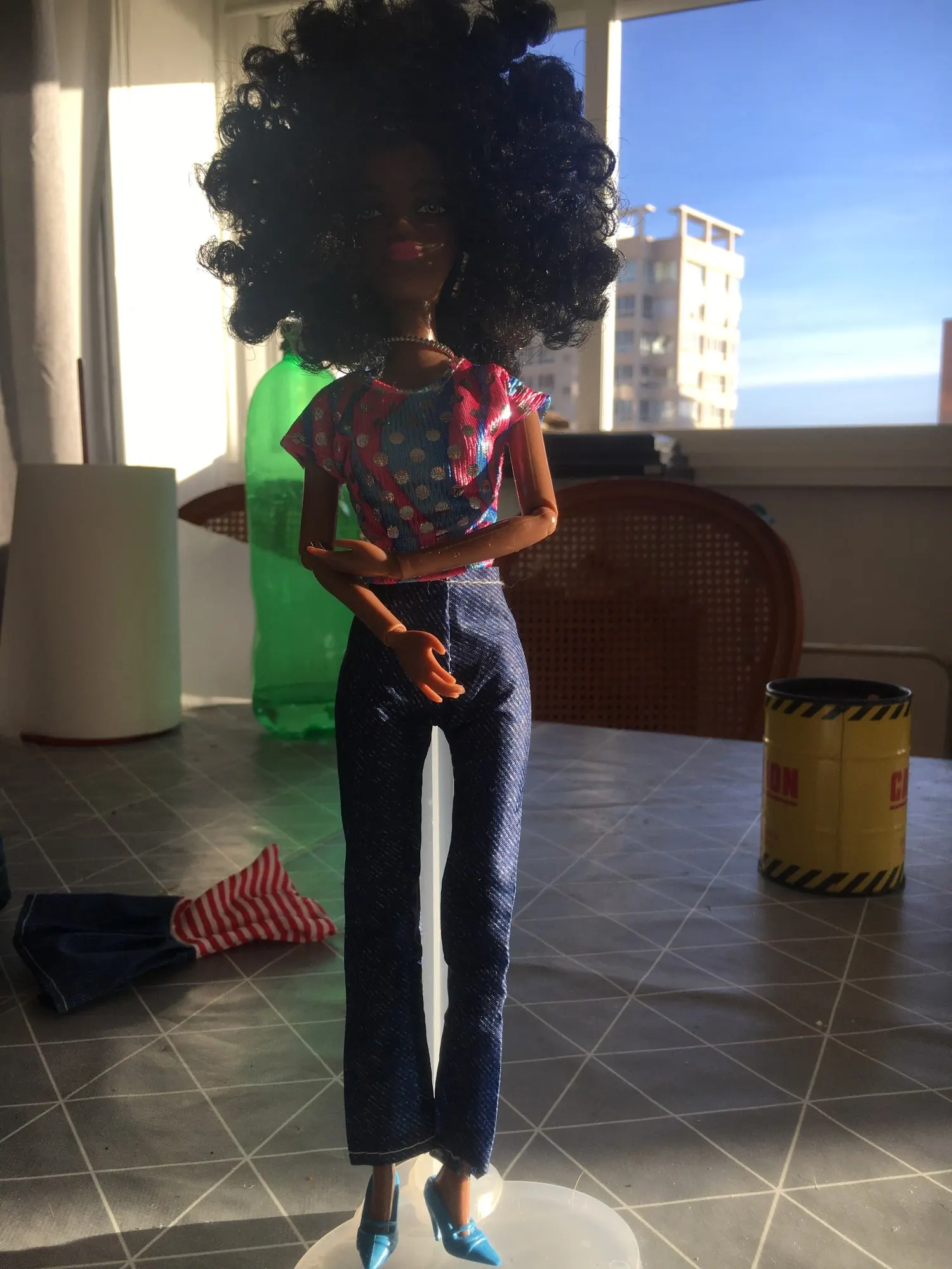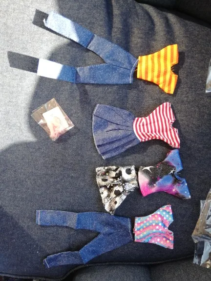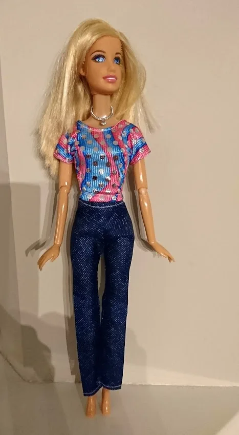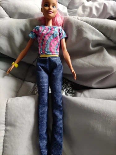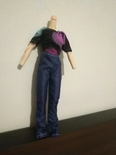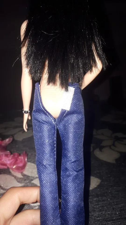 Некоторые из них слишком узкие для Barbies нормального размера. «Деним» на самом деле не деним, ткань тонкая и на ощупь как бумага. Нехороший.