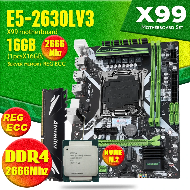 Материнская плата HUANANZH X99, DDR4 DIMM D4, с процессором Xeon E5 2630L V3 LGA2011-3, 1 х16 ГБ = 16 ГБ, PC4 ОЗУ 2666 МГц, Память DDR4, REG ECC