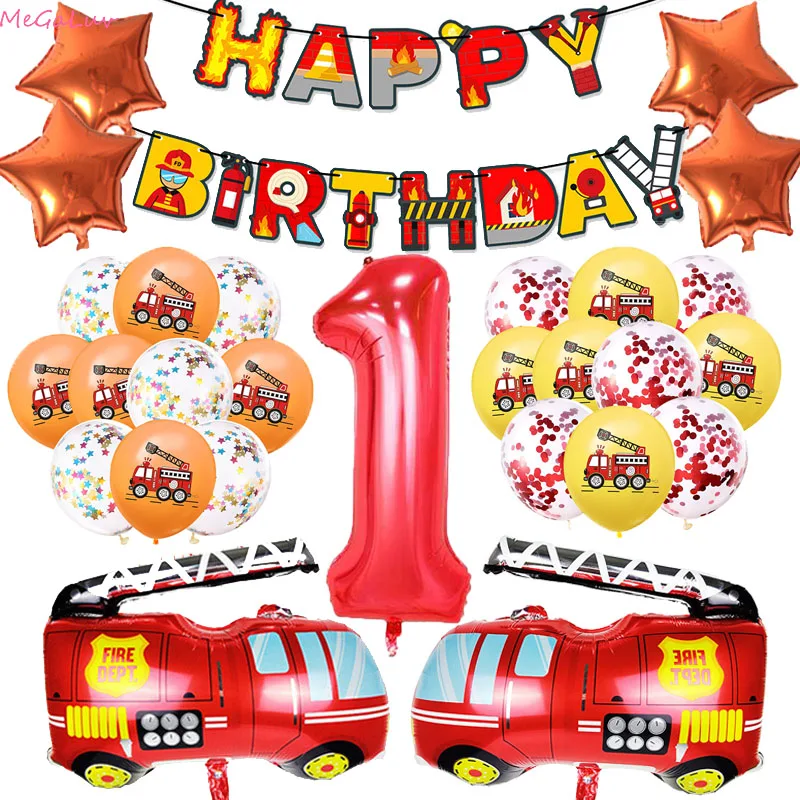 Пожарный тематическая вечеринка на день рождения Декор пожарная машина воздушный шар из фольги пожарный настенный баннер латексный шар товары для дня рождения